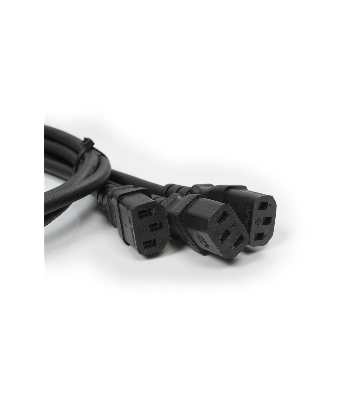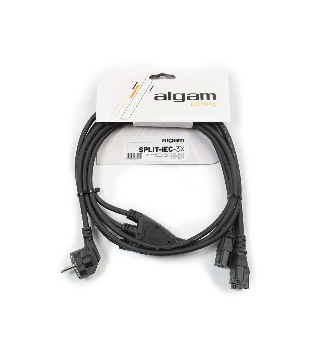 Il cavo di alimentazione SPLIT-IEC-3X di Algam Lighting rappresenta la soluzione ideale per alimentare più macchine ravvicinate. Lunghezza totale 2,4 metri, cavo principale lungo di 1,80 metri, 3 cavi con connettore IEC lunghi 60 cm.