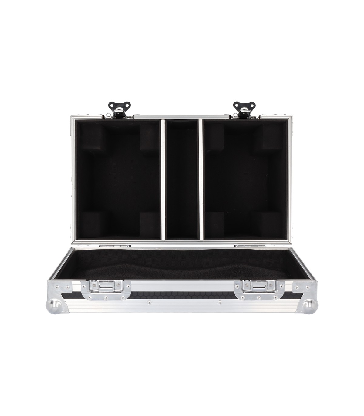 Questo flightcase in legno è stato appositamente progettato per offrire una protezione ottimale per due teste mobili Algam Lighting MS150 durante i vostri viaggi e per il loro stoccaggio. È dotato di ruote per facilitare il trasporto della vostra attrezzatura, anche su superfici irregolari. Realizzato con materiali robusti, fornisce una protezione efficace contro urti, graffi e altri danni che possono verificarsi durante il trasporto. L'interno è imbottito per mantenere i proiettori in posizione e assorbire le vibrazioni, mentre il coperchio superiore è fissato da una serie di chiusure a farfalla.