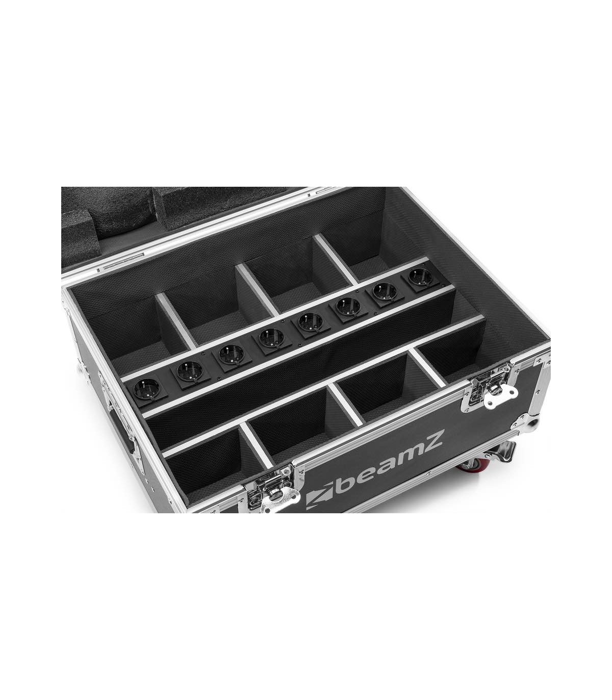 Il Flightcase di ricarica BeamZ FCC9 è la soluzione perfetta per trasportare e caricare in tutta sicurezza i dispositivi di illuminazione wireless della serie BBP9. Questa custodia resistente e scorrevole con maniglie è la soluzione perfetta per l'uso mobile. Quando lo spettacolo è finito, è sufficiente collegare i proiettori al modulo di ricarica interno e utilizzare la spina esterna per collegarsi direttamente alla presa elettrica. Il giorno dopo, i tuoi dispositivi sono completamente carichi e pronti a lavorare. Ogni custodia contiene fino a 8 proiettori con spazio sufficiente per tutti i cavi di alimentazione.