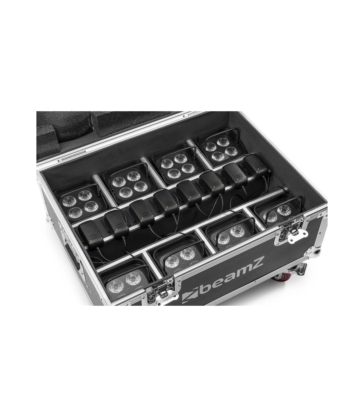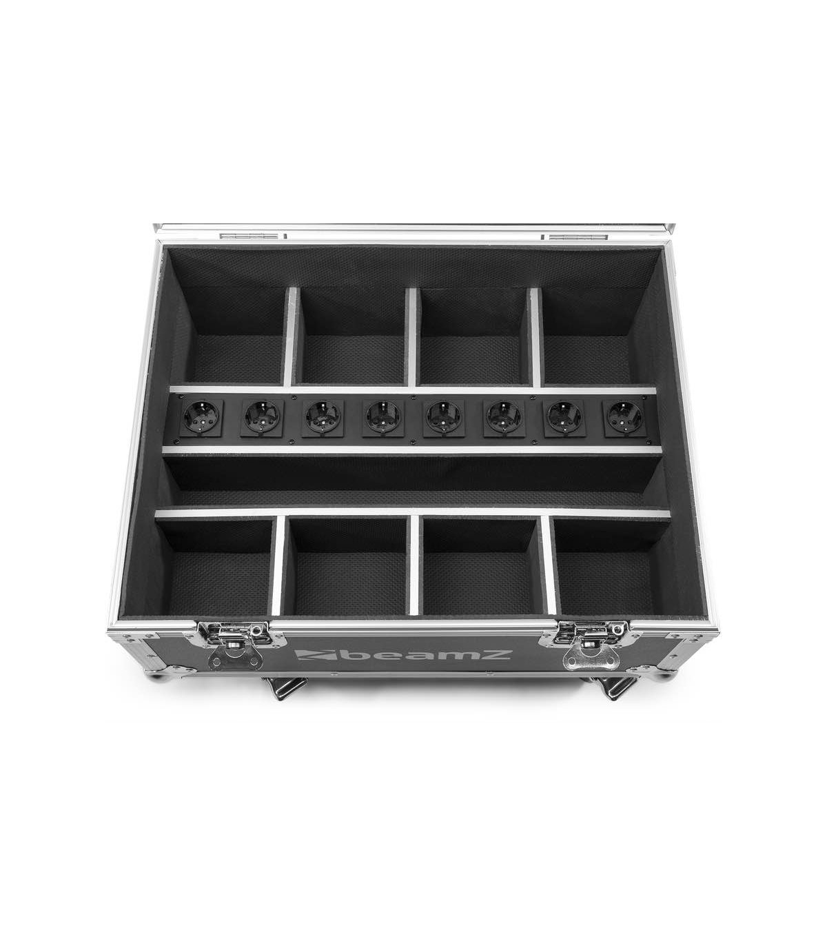 Il Flightcase di ricarica BeamZ FCC10 è la soluzione perfetta per trasportare e caricare in tutta sicurezza i dispositivi di illuminazione wireless della serie BBP54. Questa custodia resistente e scorrevole con maniglie è la soluzione perfetta per l’uso mobile. Quando lo spettacolo è finito, è sufficiente collegare i proiettori al modulo di ricarica interno e utilizzare la spina esterna per collegarsi direttamente alla presa elettrica. Nell'altra sezione è possibile caricare fino a 8 pacchi batteria supplementari. Il giorno dopo, i tuoi dispositivi sono completamente carichi e pronti a lavorare.