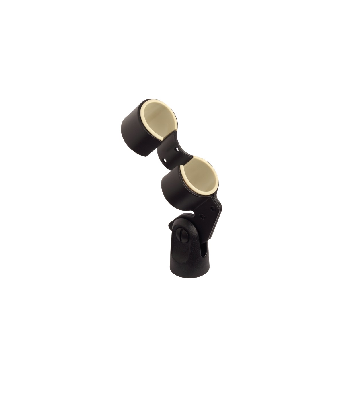 Permette di posizionare verticalmente su un'asta microfonica standard due microfoni SM57, Beta 57A, oppure due microfoni della serie 545 di Shure.