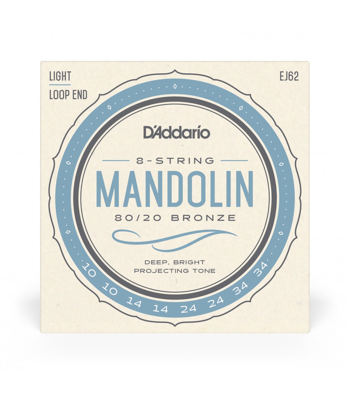 D'Addario EJ62 80/20 Bronze Mandolin Strings, Light, 10-34