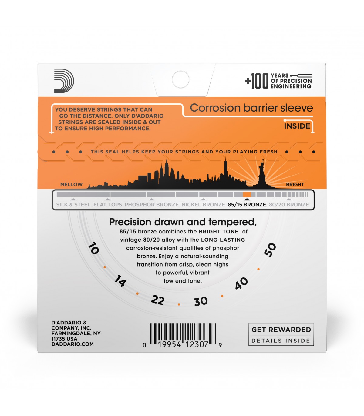 Il set 85/15 Bronze unisce la brillantezza del 80/20 Bronze con la caratteristica lunga vita delle Phosphor Bronze. Il filo in bronzo avvolge con precisione un'anima a forma esagonale in high carbon steel, che permette una lunga durata, un tono brillante e ottima intonazione.Le corde EZ900 sono ideali per il principiante o per il musicista che preferisce un tono più morbido e un bending facilitati.
