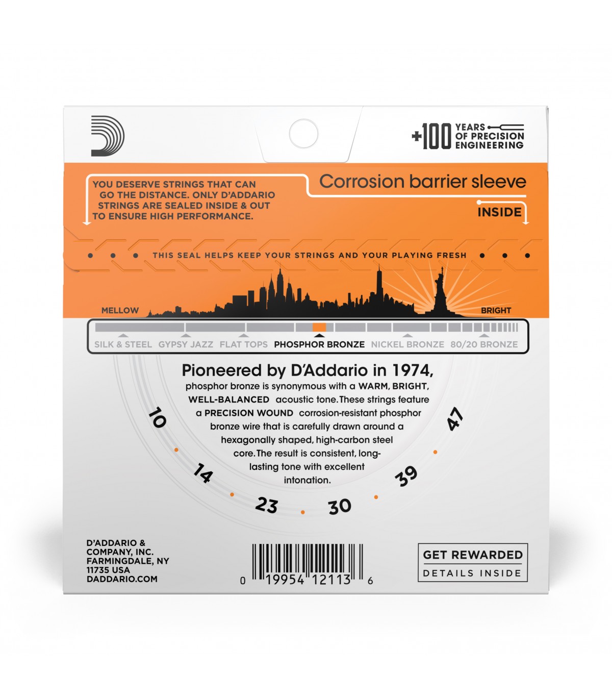 Corde D’Addario EJ15 per chitarra acustica, in bronzo fosforoso, Extra Light, 10-47