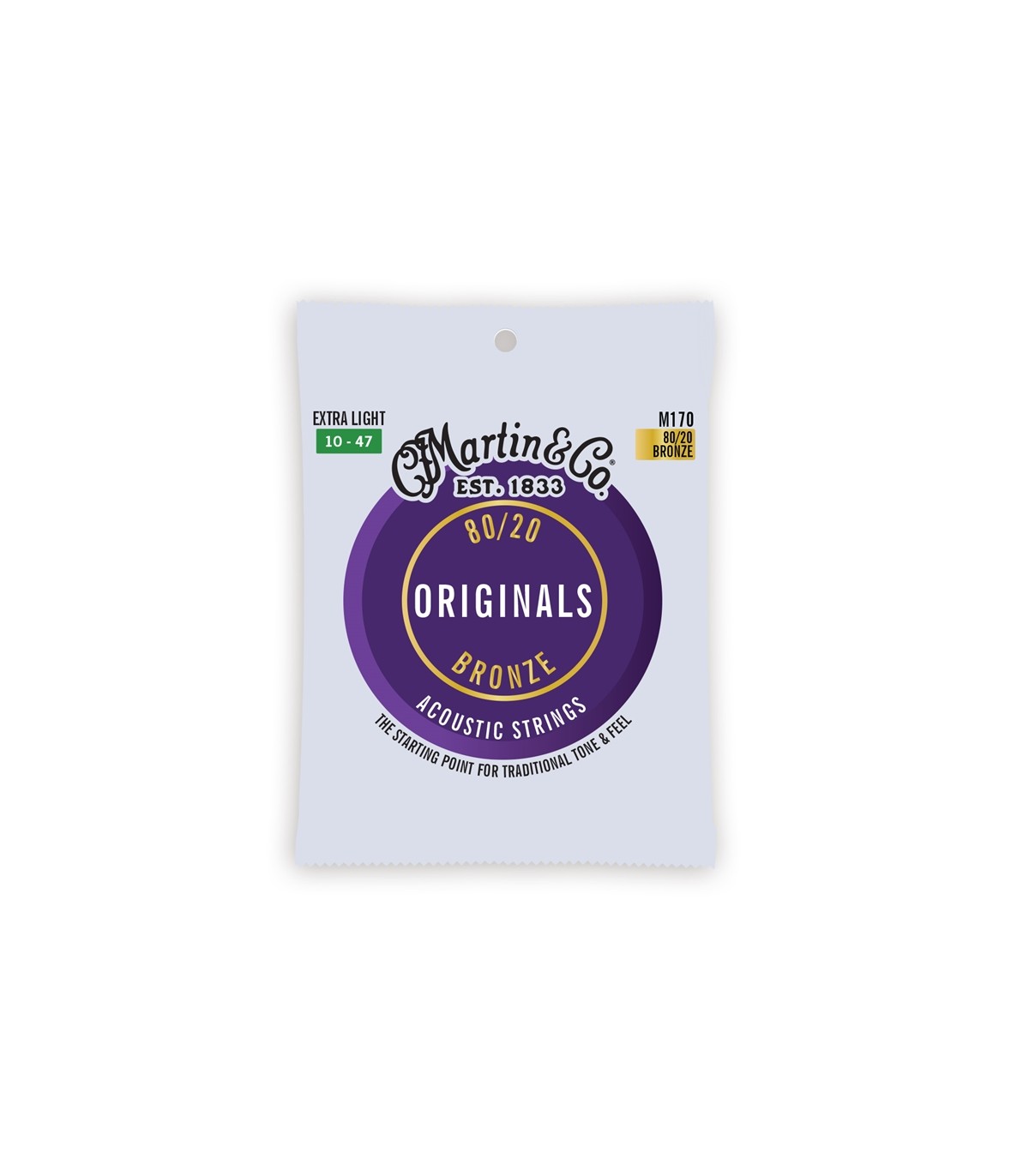 M170 è il set di corde extra light per chitarra acustica in bronzo 80/20 della serie "Martin Originals" con scalatura 10-47. Le Martin Originals sono la versione aggiornata delle storiche SP, con un costo contenuto, ideali per sessioni di registrazione e per l'utilizzo sul palco.