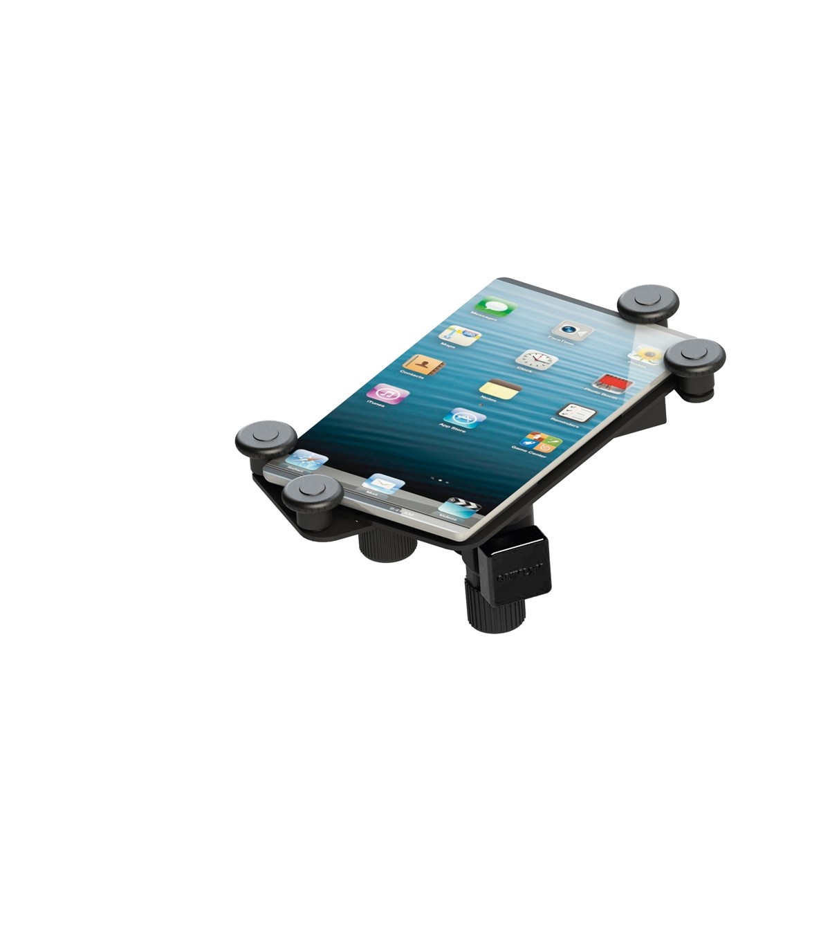 Grazie al suo design permette a qualsiasi musicista di integrare con praticità e sicurezza il proprio tablet in ogni asta microfono o leggio nell’uso sul palco, in studio, sala prove o in casa.