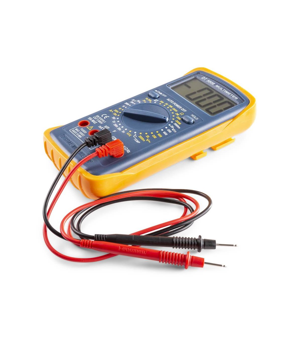 Il multimetro digitale DMM10 può misurare tensione DC e AC, corrente alternata DC, resistenza, capacità, temperatura e diodi. Utilizzando un ampio display di facile lettura e la retroilluminazione per ambienti con poca luce, questo multimetro digitale portatile è la risorsa ideale per tutte le vostre riparazioni a casa o al lavoro.