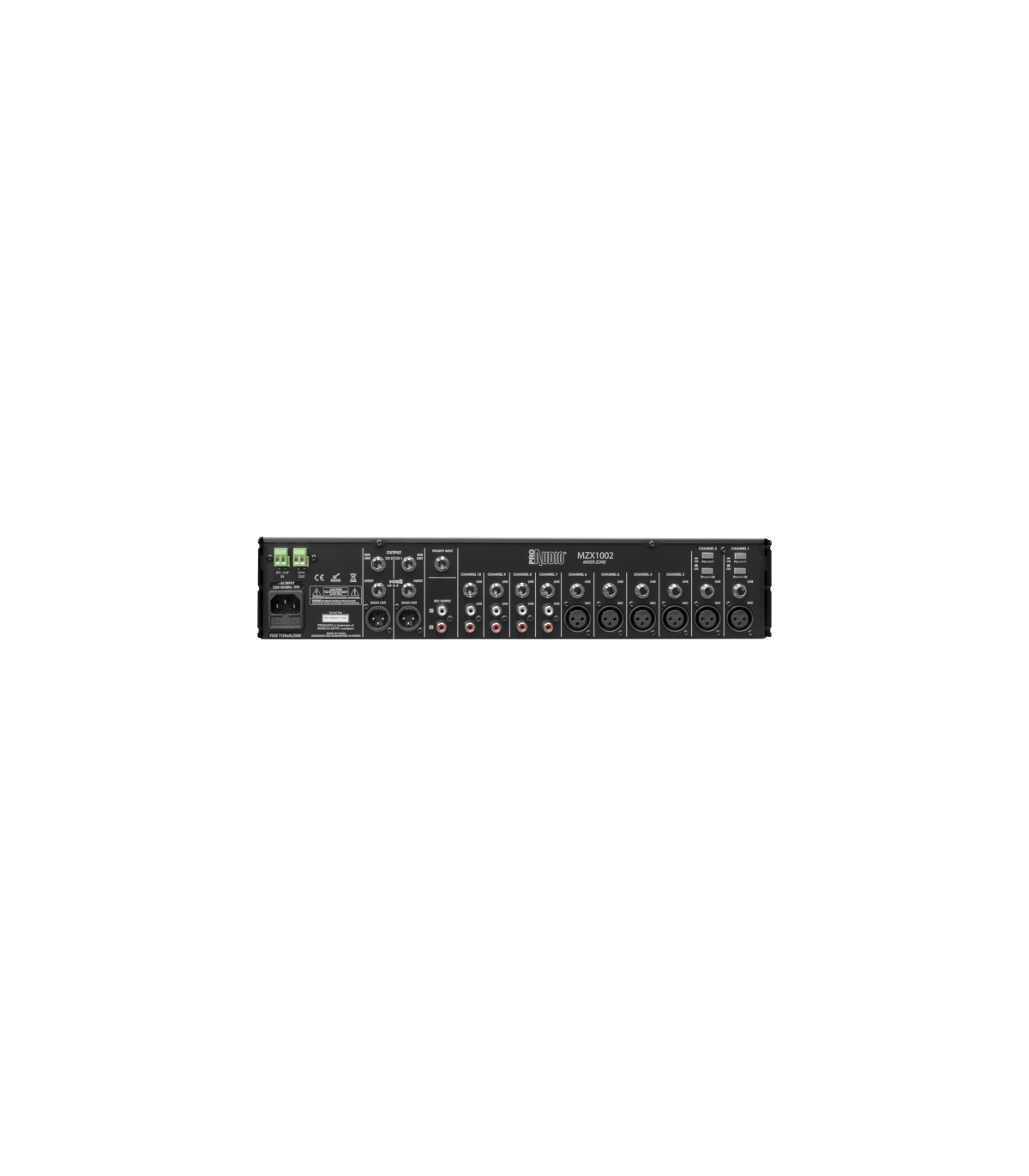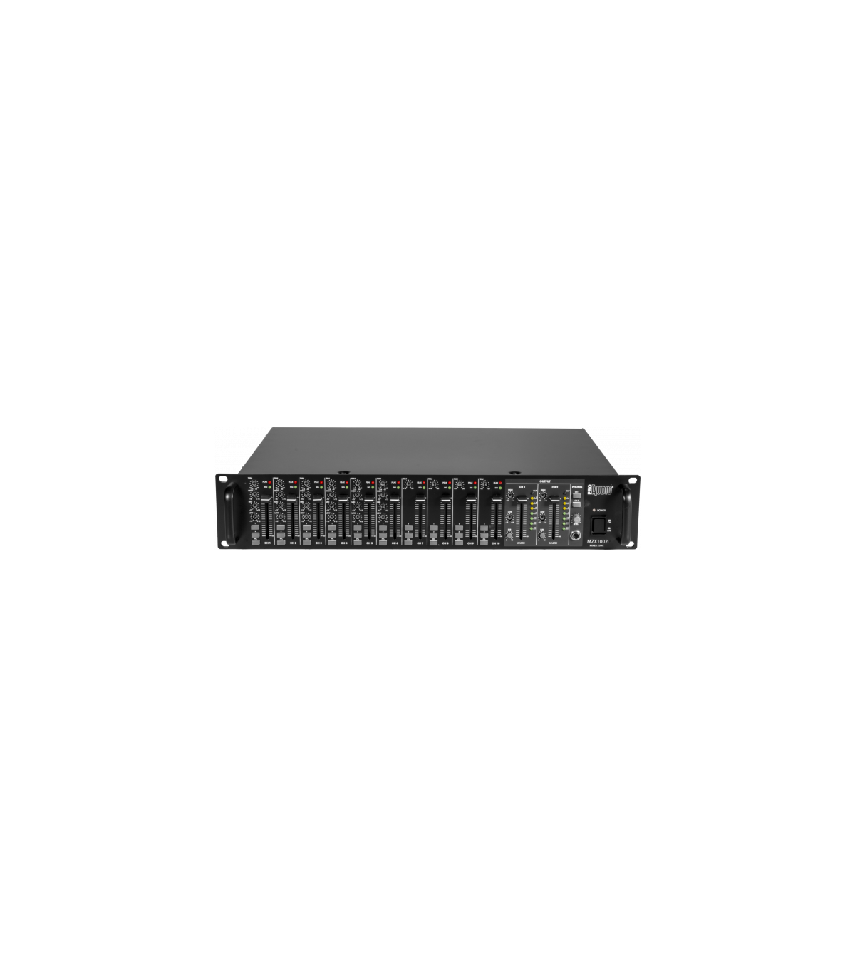 Il mixer 2-Zone MZX1002 è un mixer da 2U rack, dotato di 10 ingressi e 2 uscite assegnabili.