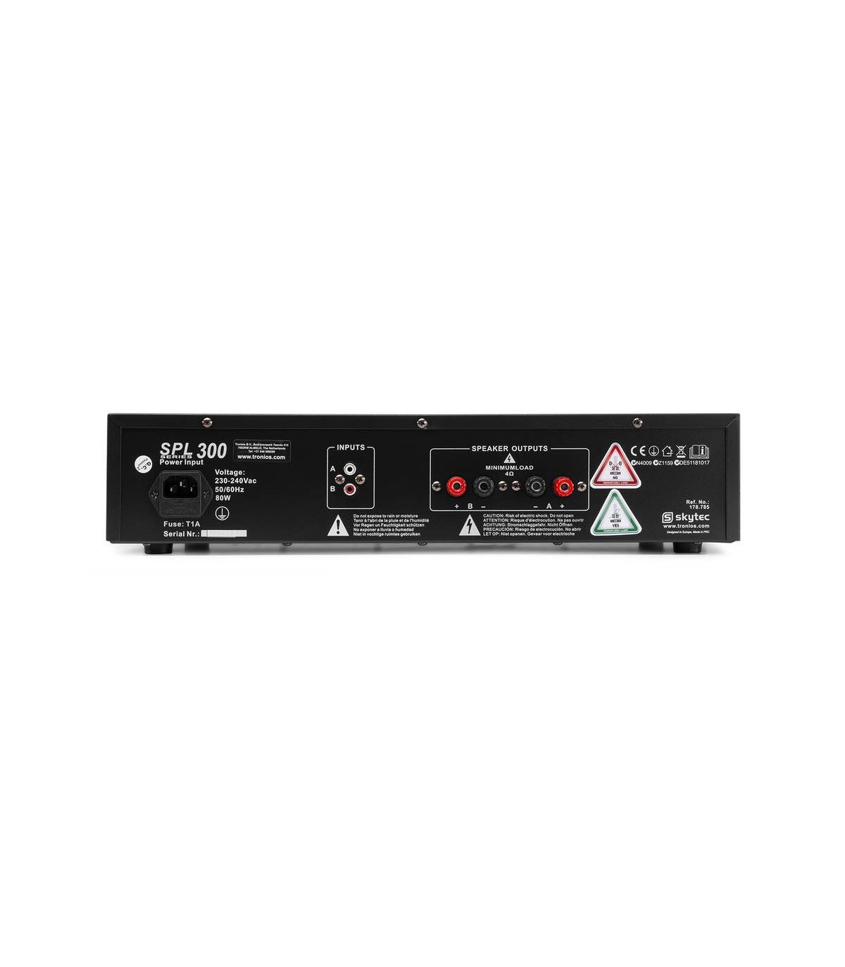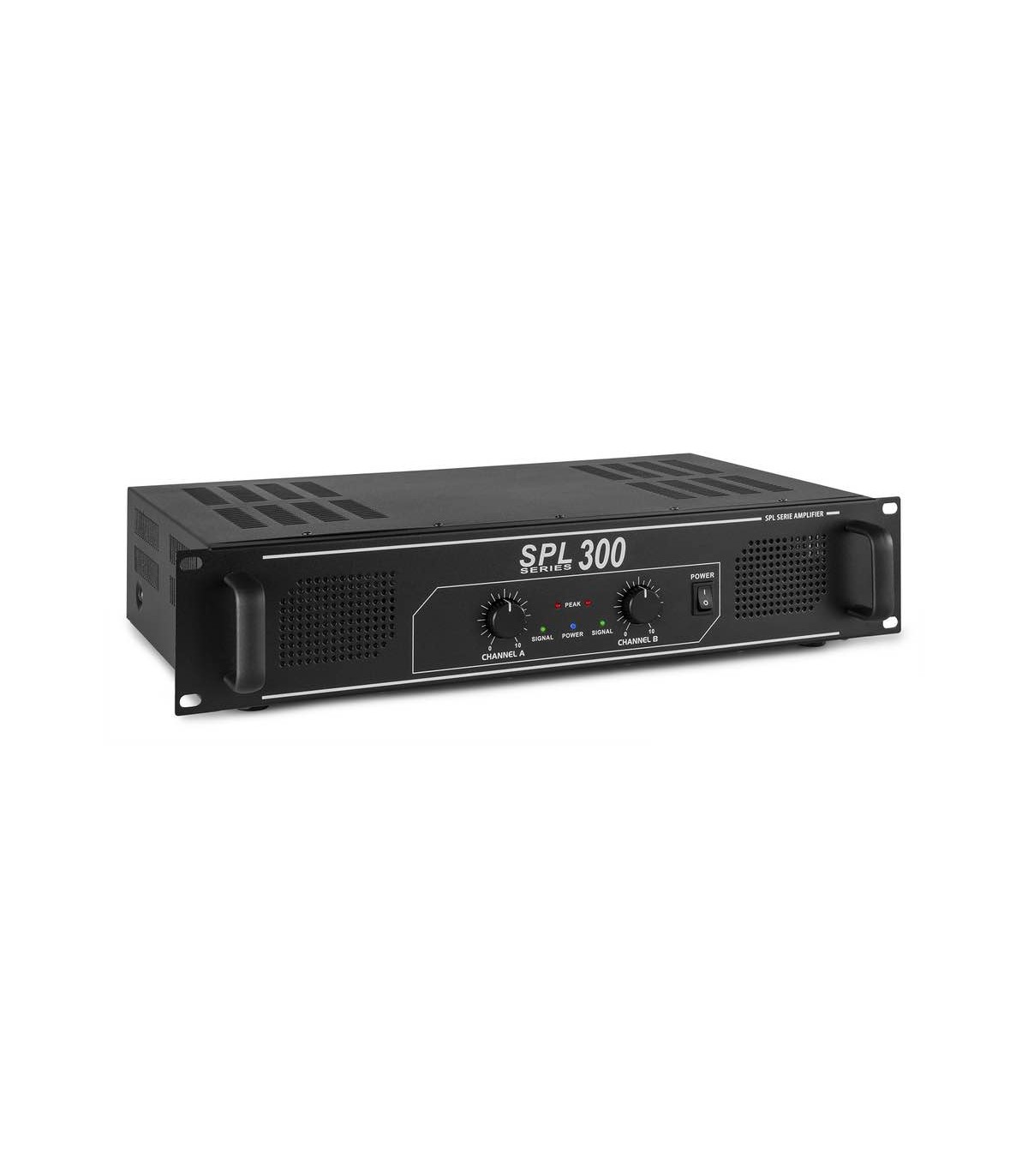 Questo amplificatore SPL 2x150W è dotato di controlli del volume e indicatori del clipping separati per ogni canale. Il peak-limiter evita il rischio di sovraccarico a vantaggio di una perfetta riproduzione del suono. Questo apparecchio utilizza la più recente tecnologia di amplificazione in grado di garantire flessibilità e prestazioni. Uno strumento perfetto per il DJ in erba. Adatto per rack da 48 cm (19").