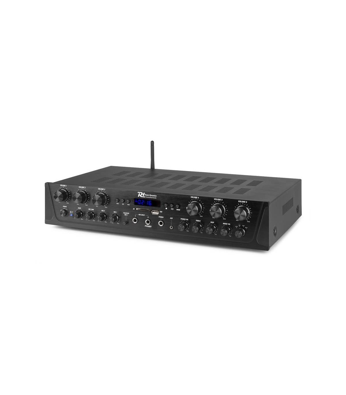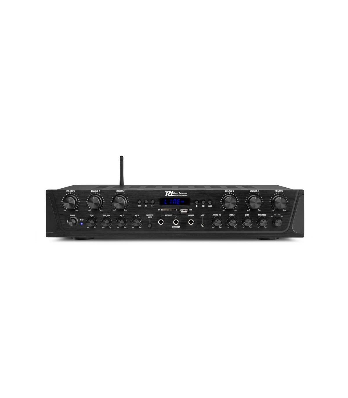 La serie PV2 è una serie di amplificatori multicanale stereo intelligenti dotati di avanzata tecnologia wireless 4.2 BT e funziona con tutti i dispositivi più recenti tra cui smartphone, tablet, laptop e computer. Goditi il dolce suono in streaming dalla tua raccolta di musica digitale personale. Tutti i sistemi offrono la possibilità di inviare musica o annunci a diversi canali desiderati (multiroom) con un controllo del volume regolabile per ogni canale. Dotato di uno slot per scheda USB / SD per la riproduzione di MP3 / WMA, una radio FM con display a LED e due ingressi per microfono con controllo del suono dei toni e dei bassi / alti, questo amplificatore è adatto per l'uso in casa o in ufficio.
