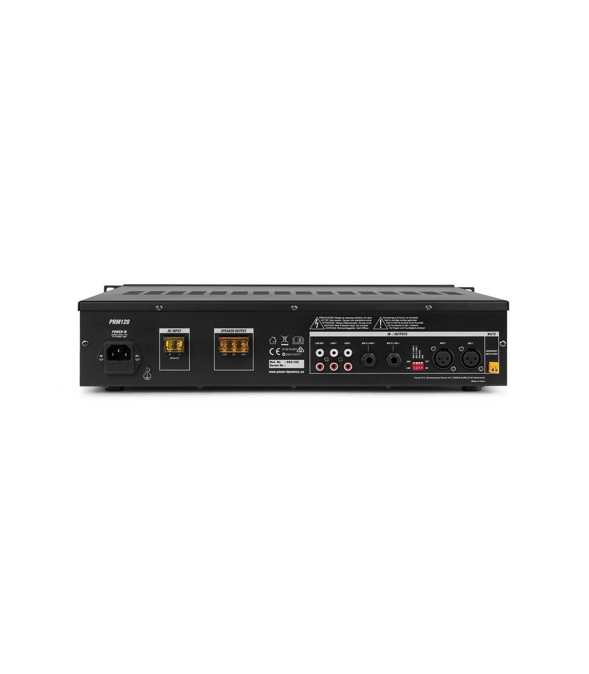 La serie PRM è una serie di amplificatori montabili su rack che possono essere utilizzati come amplificatori da 100 V o come amplificatori standard a bassa impedenza. Questi amplificatori sono dotati di ricevitore BT e porte USB / SD per la riproduzione di MP3, incluso un luminoso display LCD con tag ID3. Tutti gli amplificatori PRM sono inoltre dotati di un ingresso XLR commutabile con alimentazione Phantom a 24V, specialmente per microfoni cercapersone e condensatore. Progettato specialmente per applicazioni come cercapersone, annunci, intercomunicazioni, musica di sottofondo, trasmissioni in impianti industriali ecc.