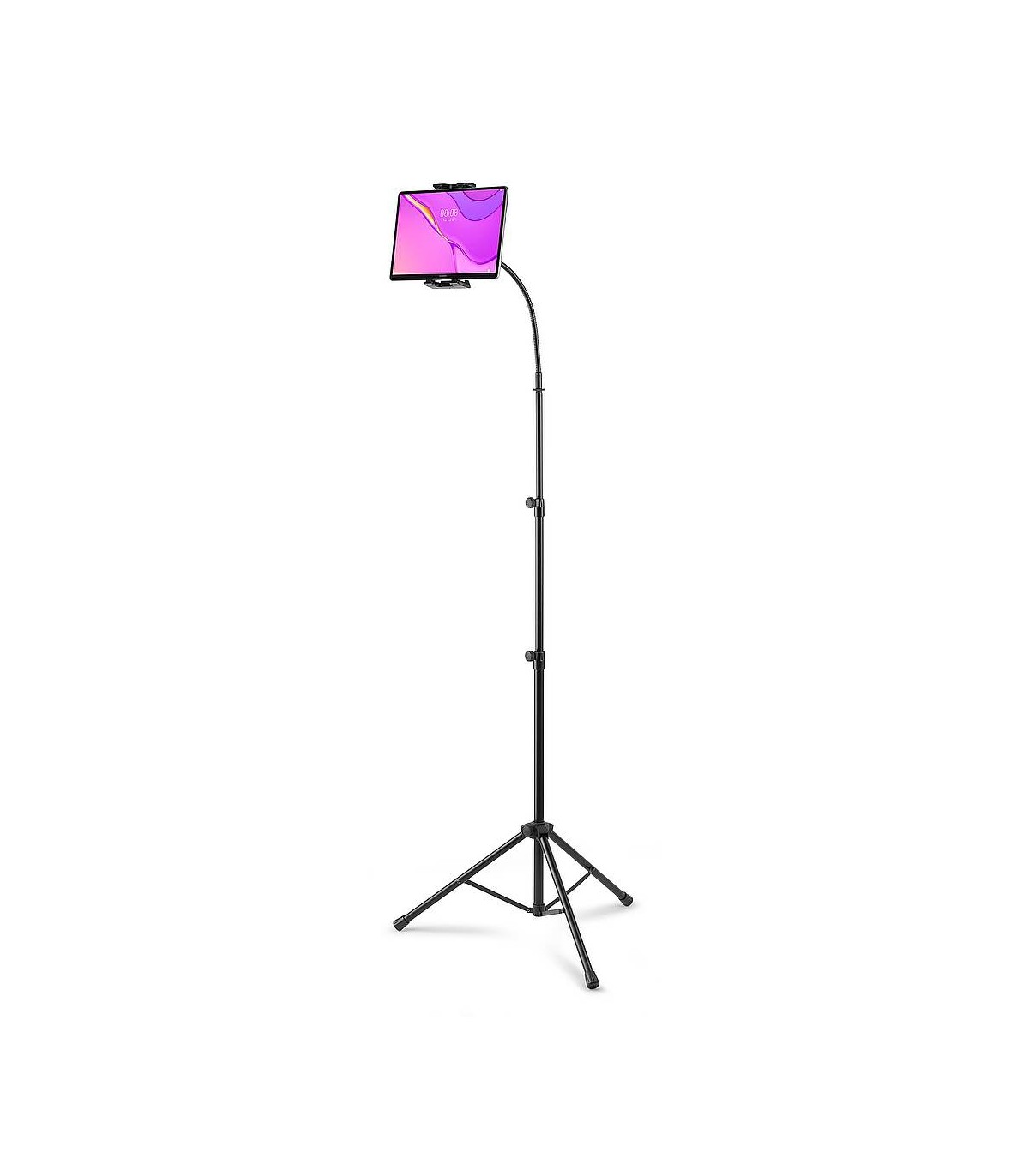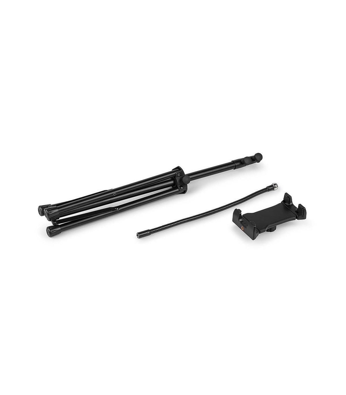 L'S10TH è un treppiede dotato di tre gambe che si ritraggono e si piegano fino a formare un pacchetto ordinato che consente la massima portabilità. È incluso un supporto per tablet con collo d'oca girevole a 360 gradi. Grazie al robusto meccanismo di chiusura, il tablet e i dispositivi rimangono saldamente in posizione, garantendo tranquillità durante ogni utilizzo. I cuscinetti in gomma sui piedini del treppiede del microfono mantengono saldamente in posizione il supporto del microfono con braccio.