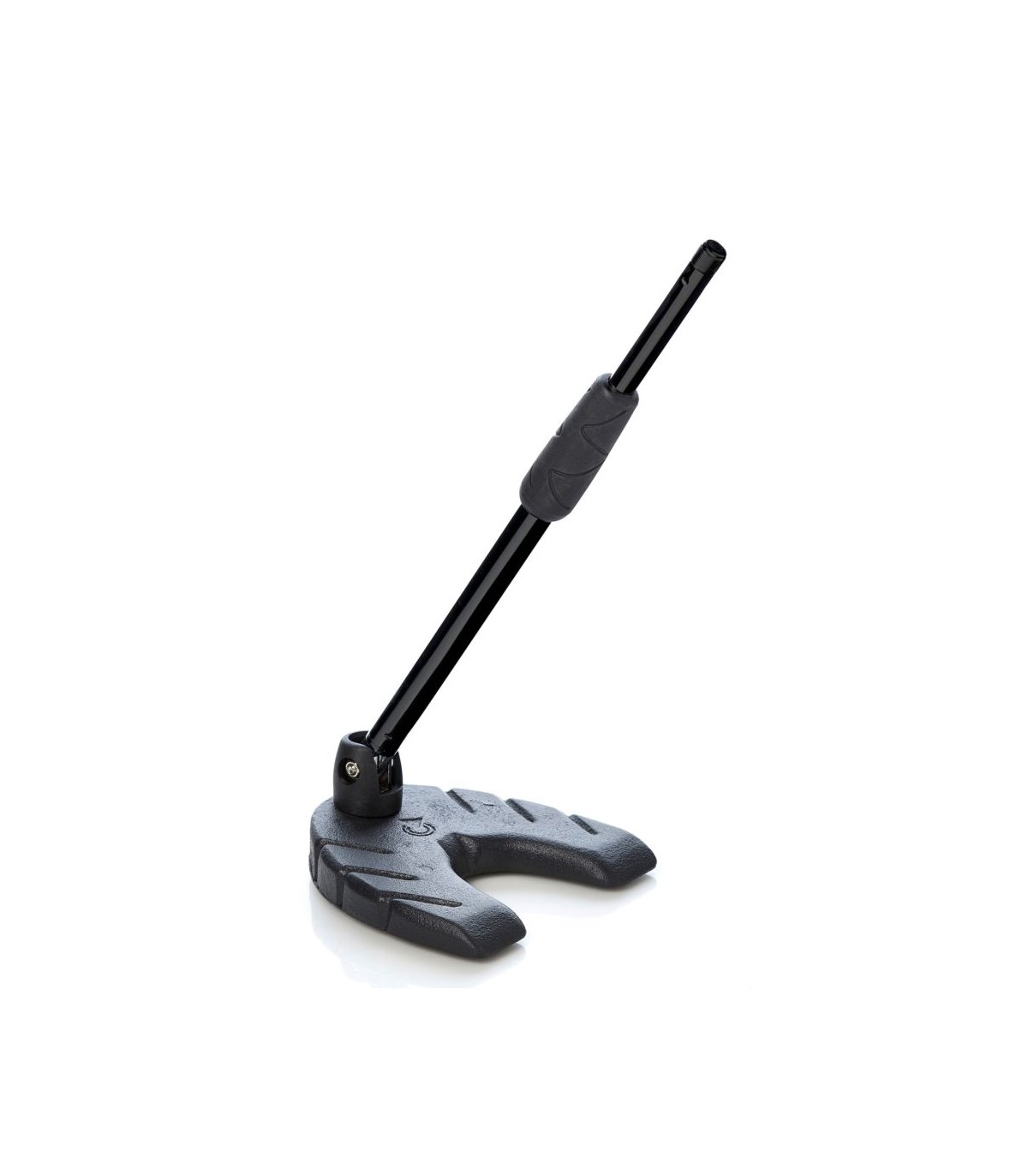 Base da tavolo con asta microfonica telescopica equipaggiata con manicotto in nylon. Base in ghisa a coda di rondine con piedini in gomma antiscivolo ed antivibrazione.