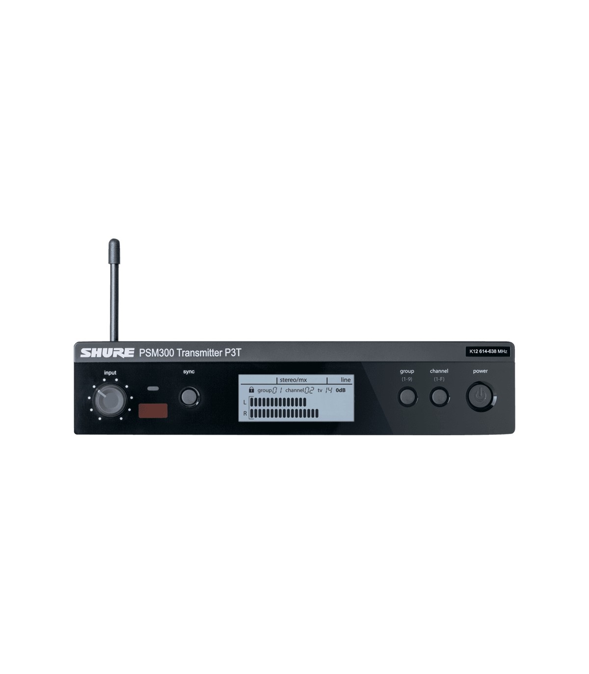 P3T è un trasmettitore da 1/2 unità rack, che include un kit di accessori per il montaggio a rack, da utilizzarsi con il Sistema di Monitoraggio Personale PSM300. Trasmissione affidabile fino a 90 metri ed elaborazione digitale dell'audio a 24 bit, P3T offre un mix di monitoraggio personale eccezionale per ogni performance. Sincronizzazione istantanea tra il trasmettitore e il ricevitore tramite infrarossi. Connettori jack TRS bilanciati da 6,3 mm (1/4") per gli ingressi e per le uscite. Schermo LCD ad elevato contrasto con meter dei livelli L/R in uscita. Antenna ¼-onda staccabile. Livello d'ingresso selezionabile line/aux. Gamma di frequenza wireless L19: dai 630 ai 654 MHz