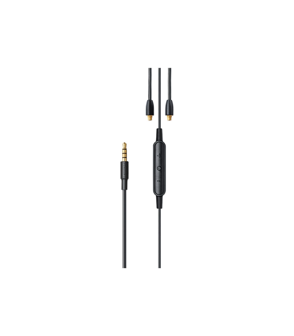 Lo Shure RMCE-UNI è un cavo universale da 127cm, con connettore minijack da 3,5mm, per auricolari della serie Shure Sound Isolating™. Microfono e controlli incorporati. Funzionalità selezionabile per dispositivi Apple (i) o Android (A) tramite l'interruttore collocato sul retro della sezione di controllo. Il microfono e il telecomando integrati garantiscono una semplice, intelligibile ed efficace gestione delle chiamate e dei messaggi vocali e forniscono un agevole controllo del volume e della riproduzione.