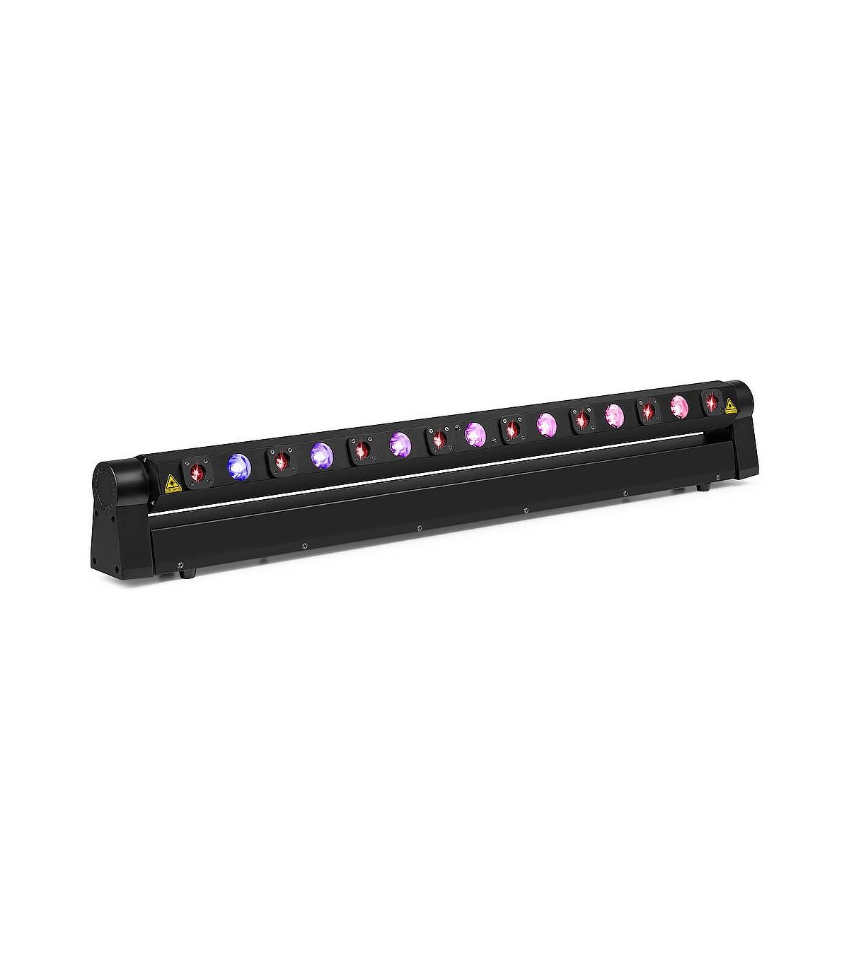 - Barra mobile con effetti Fat Beam e Laser rosso 7 LED 4 in 1 da 3 W Miscelazione colori RGBW 8 raggi laser rossi (638 nM). Movim