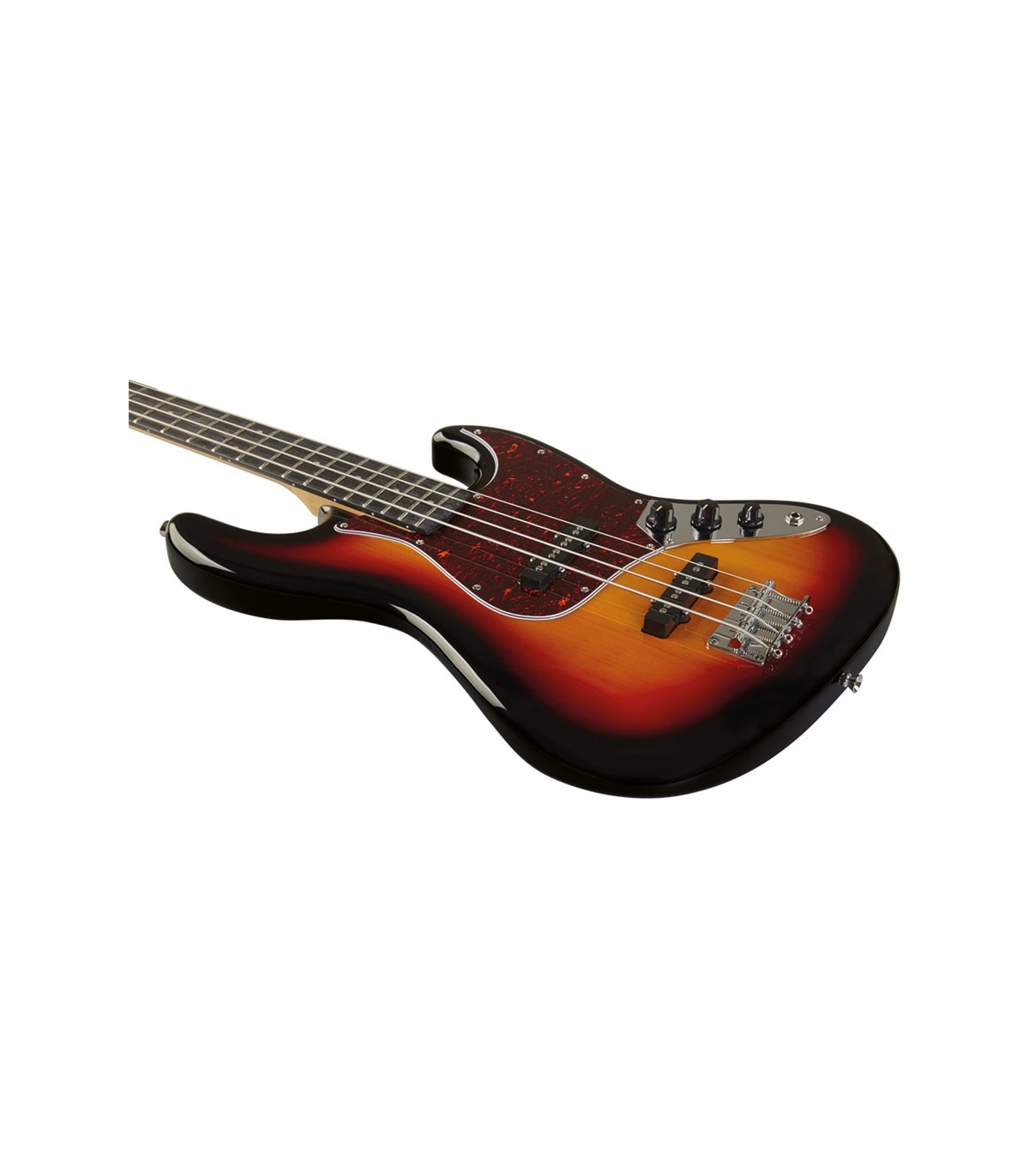 Il VJB-200 Sunburst è il basso elettrico 4 corde della serie "Tribute Starter" di casa Eko Guitars. Ispirato al leggendario Jazz Bass, presenta corpo in Pioppo, manico in Acero e tastiera 21 tasti in resina Eko WPC. Monta due pickup JB con controlli separati di Volume e 1 tono. Ideale per il bassista che desidera uno strumento affidabile, versatile, performante e ad un costo contenuto.