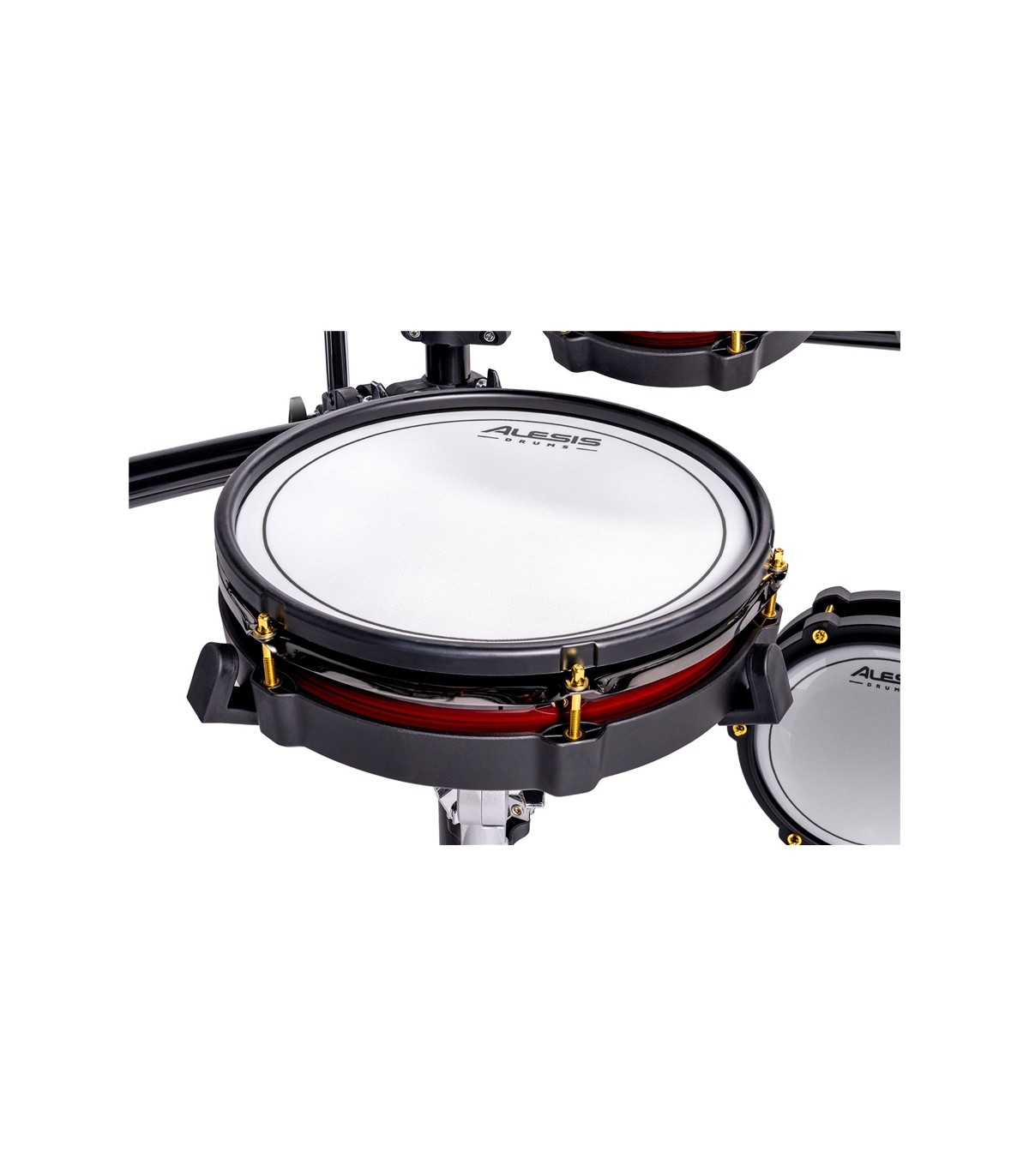 Mantengono la stessa costruzione e progettazione dell’Alesis Strata Core dei drumpads dell’Alesis Strata Prime ma con dimensioni ridotte. Il rullante e i tom da 8“/8”/10“ sono a doppia zona con suoni indipendenti della pelle, del rimstick e del rim shot insieme.