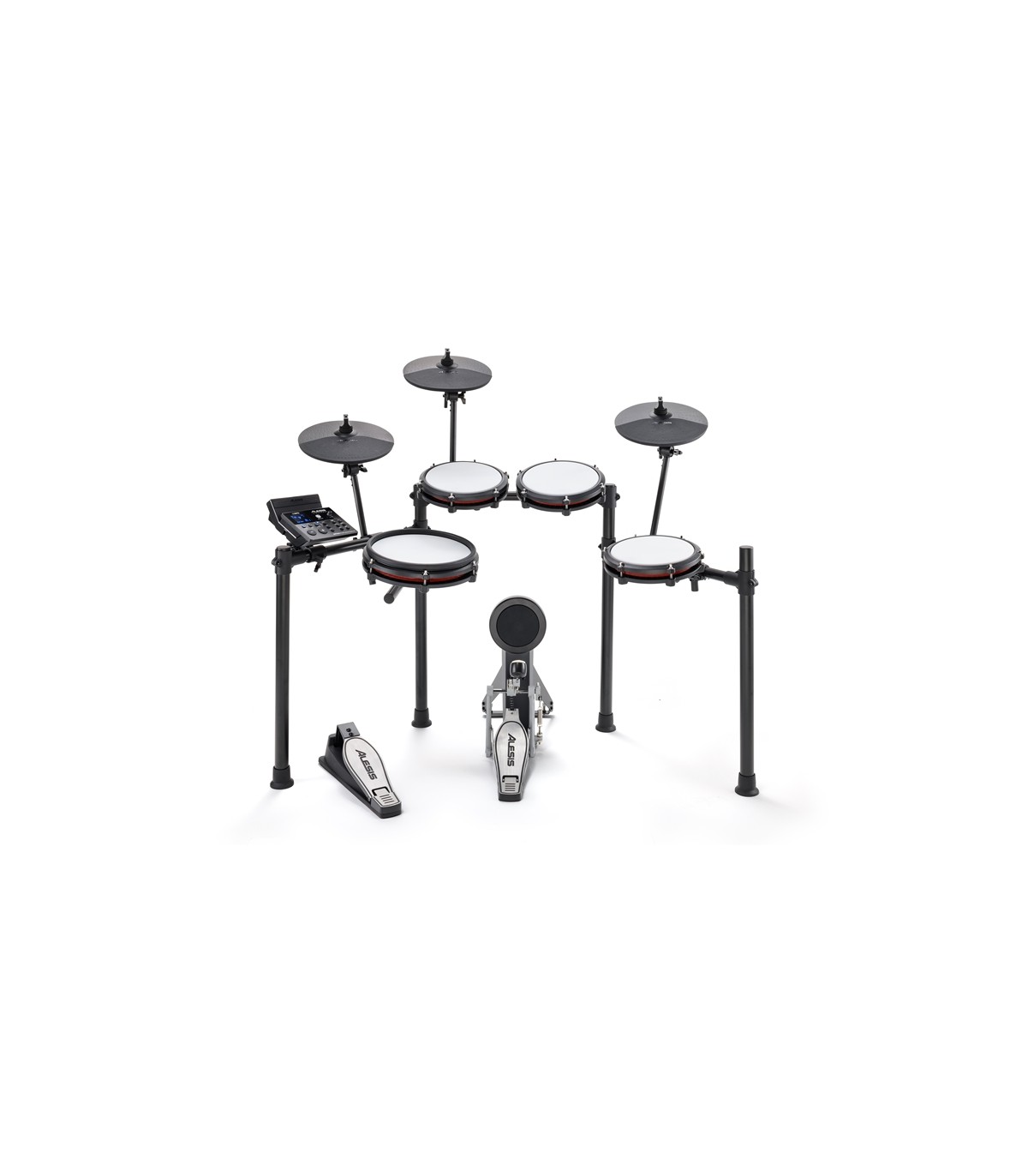 Alesis Nitro Max è una batteria elettronica composta da rullante da 10” a doppia zona, da tre pad per tom da 8” tutti a singola zona e con pelli mesh, da un pad della grancassa di tipo verticale anch’esso con un'ampia superficie da 8”, da un crash da 10" con funzione choke, un ride da 10" e un charleston da 10”.