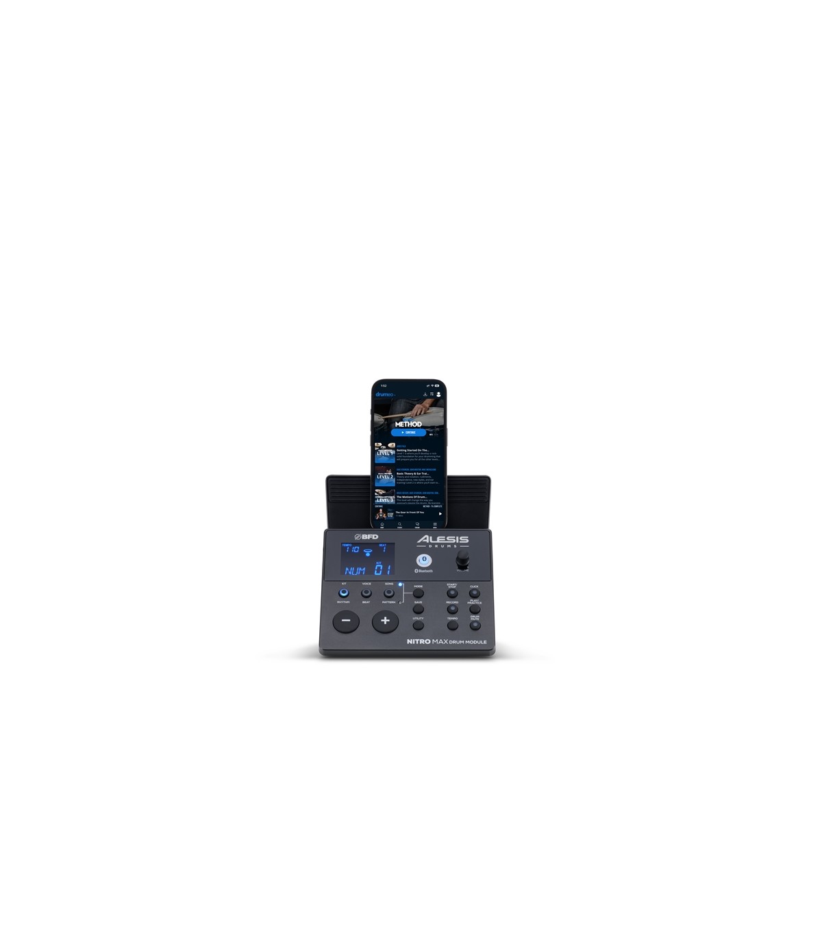 Dotato di 32 kit con suoni della rinomata libreria di campioni di batteria BFD, Nitro Max ti dà la possibilità di connetterti tramite un ingresso audio wireless Bluetooth ad un qualsiasi device mobile, una serie di funzionalità di apprendimento integrate e 3 mesi di abbonamento Drumeo per lezioni illimitate con i migliori insegnanti del mondo.