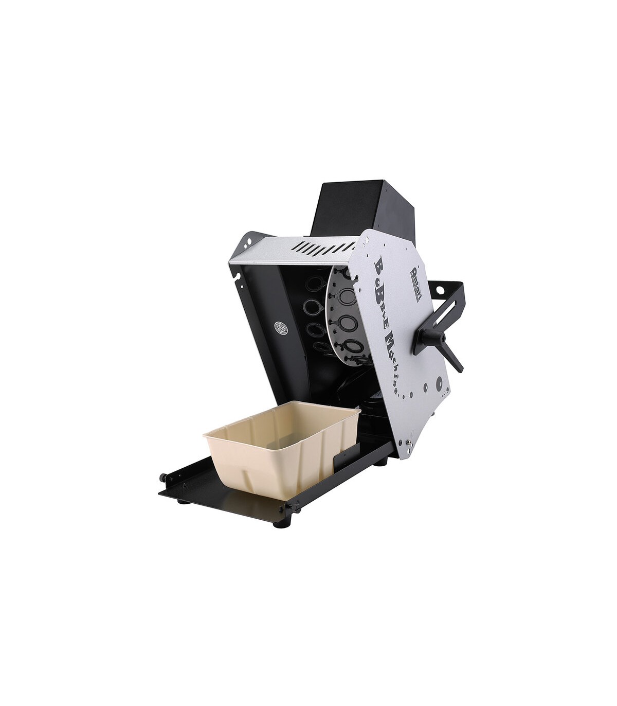 È dotata di una ruota doppia che permette di generare un'uscita elevata di bolle, mentre ricicla il liquido per eliminare le perdite. La macchina è racchiusa in un robusto involucro e può funzionare in modo continuo. È facile da ricaricare e include una staffa per il montaggio, rendendola semplice da usare e versatile.