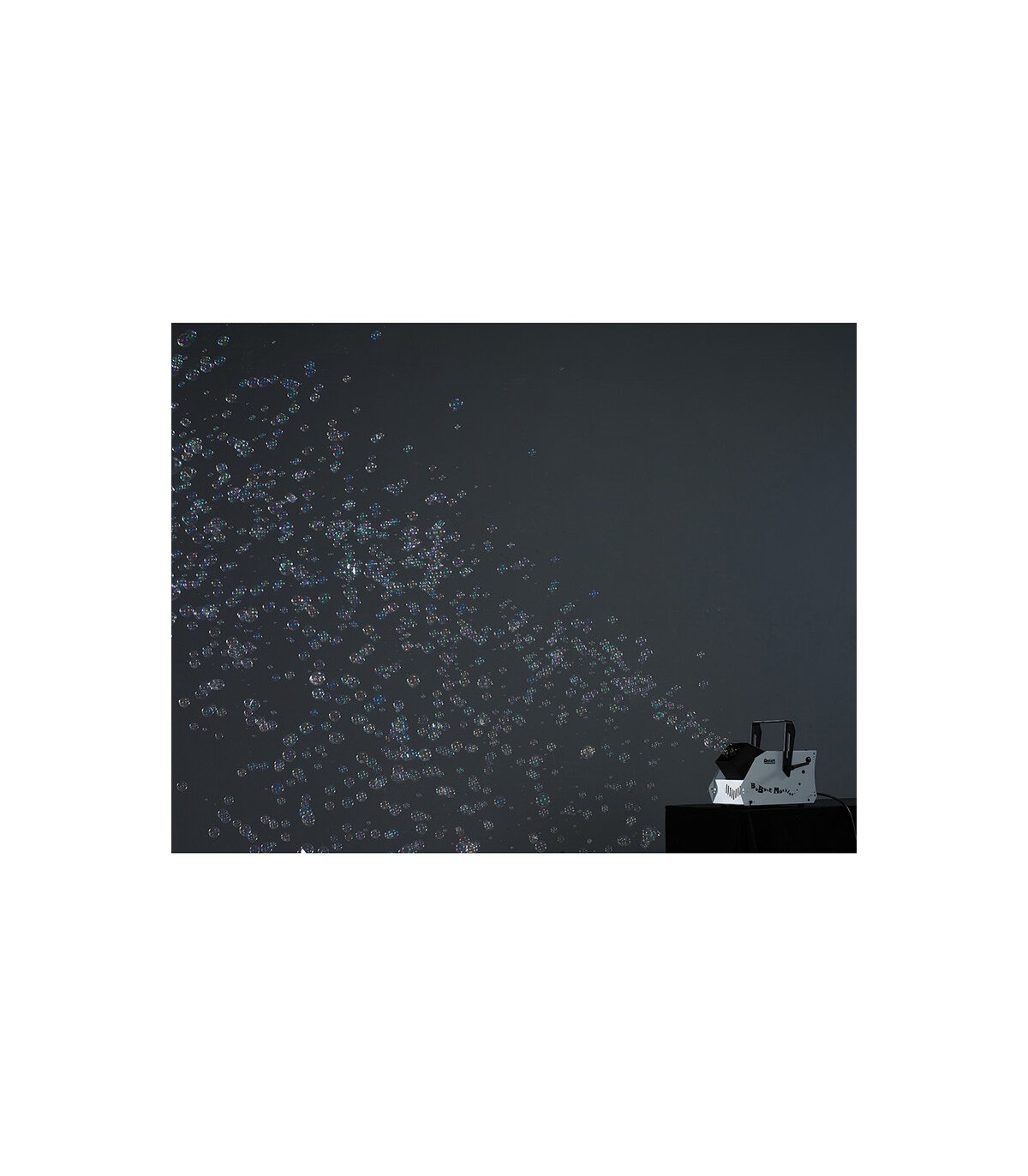 Compact bubble machine, 0.7 L tank, dual-wheel system for high output, 32 W, hanging bracket for easy setup