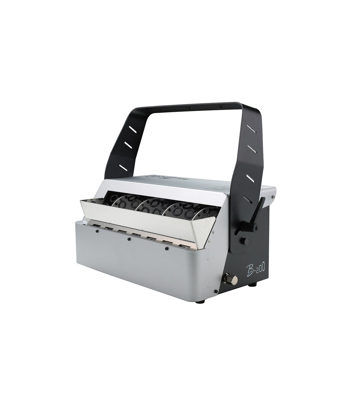 Macchina per bolle ad elevato volume di uscita dotata di 4 ruote a doppie bolle per produrre una grande quantità di bolle; il set di 3 ventole sul retro trasporta le bolle più lontano per aumentare l'area di copertura.