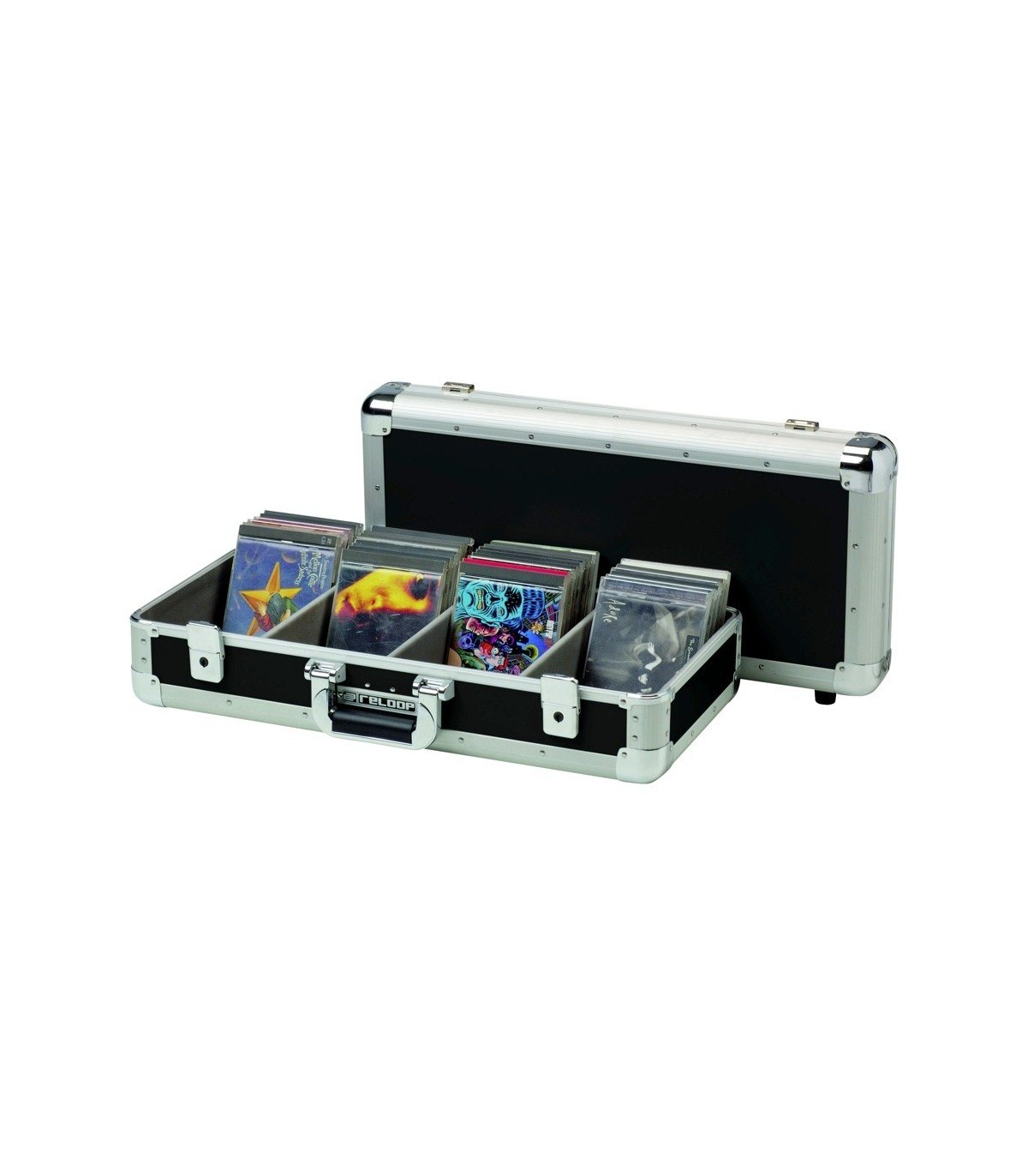 Valigia professionale per il trasporto di 100 CD suddivisi in 4 compartimenti e con top rimovibile. Colore nero.