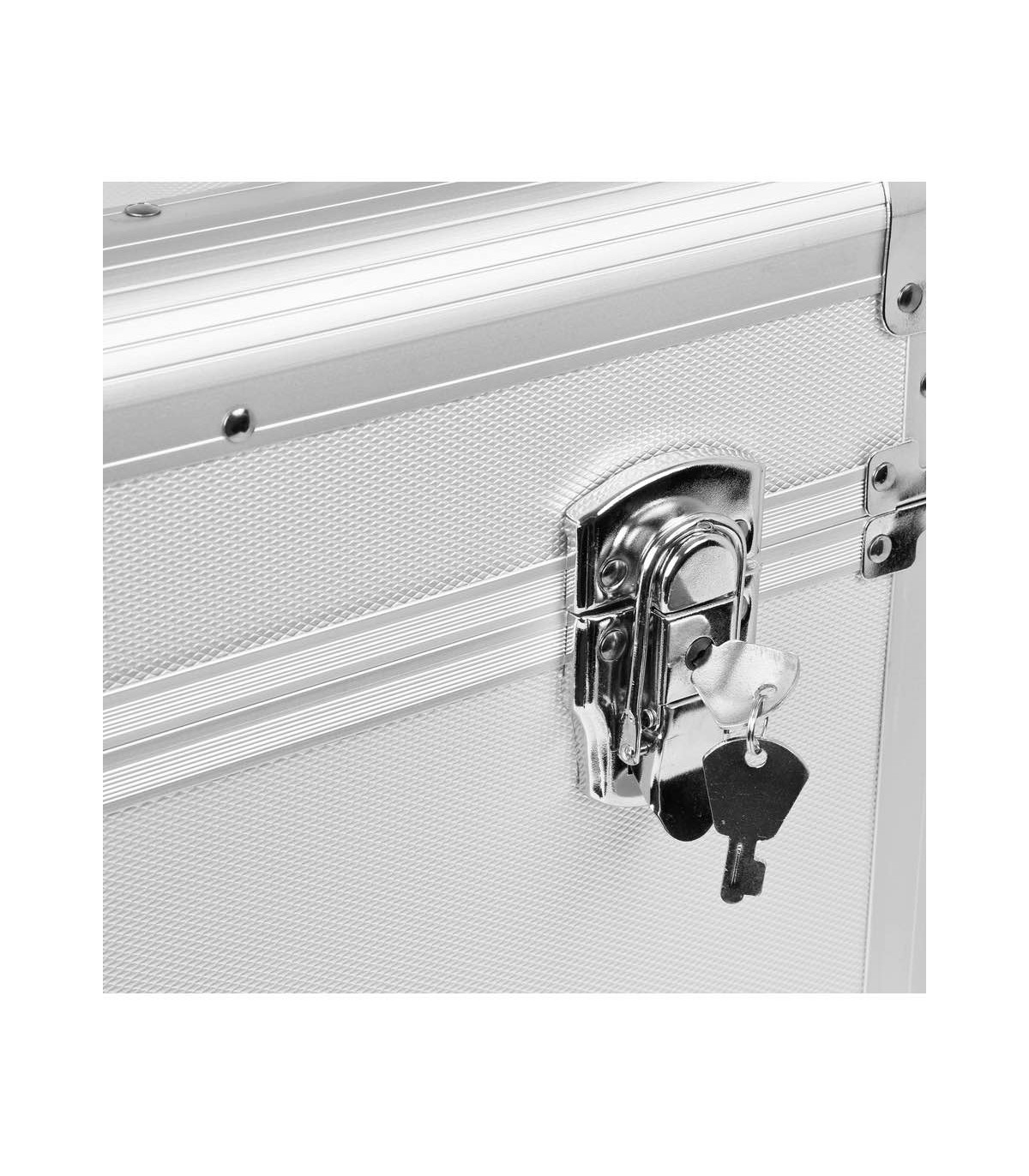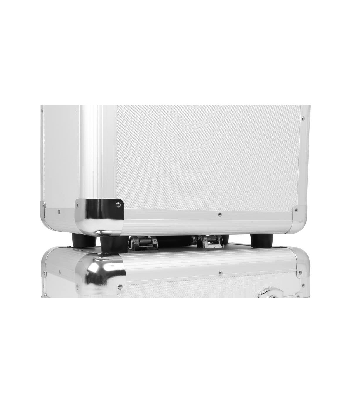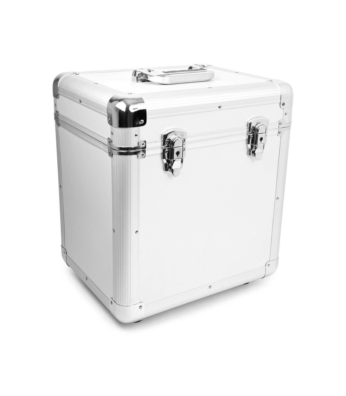 Il contenitore RC100 è in grado di contenere dischi/LP in vinile da 12" all'interno del suo scomparto interno rivestito in gommapiuma. L'esterno elegante è dotato di coperchio completamente rimovibile e di serrature. Il contenitore è realizzato con 4 piedini e di maniglia con impugnatura soffice che consentono di impilare più contenitori l'uno sull'altro.