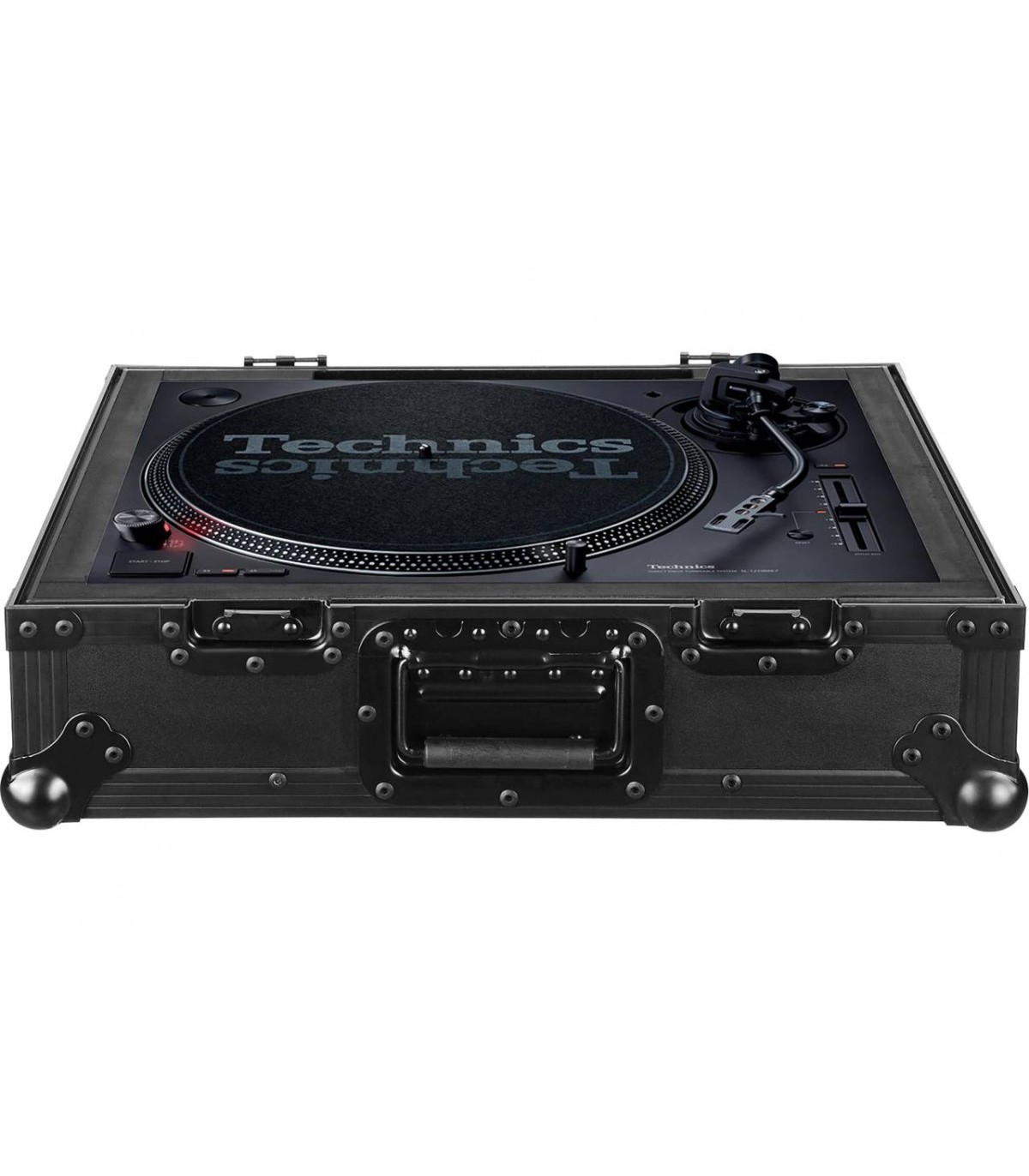 With the T-10 NSE from Zomo you get a high quality flight case for the Technics SL-1210 MK7. The T-10 NSE in the appealing NSE edition impresses with its black look. This flightcase was developed to survive the rough DJ use without any problems and convinces with an extremely stable quality. The extra strong, black lacquered aluminium profiles and very solid ball corners guarantee an absolutely high durability and provide noble and beautiful design accents. The practical inner padding of the T-10 NSE ensures optimal protection of the Technics DJ turntable against damage. Abrasion and cigarette burns cannot harm the T-10 NSE, thanks to the solid, laminated 9mm plywood. Made for the rough DJ everyday life, the Zomo Flightcases are unrestricted tour-suitable and protect your valuable DJ equipment from damage, wetness or falls. The Technics Equipment Case in the night black NSE Edition not only offers strong, professional quality, but also inspires with a modern look - without question an eye-catcher! The helpful butterfly snap locks ensure an extraordinarily stable fit of the cover and easy unlocking and locking. All NSE flightcases can also be locked with an optional lock for stronger protection. ** The devices pictured and/or mentioned in the photos are NOT included in the scope of delivery!