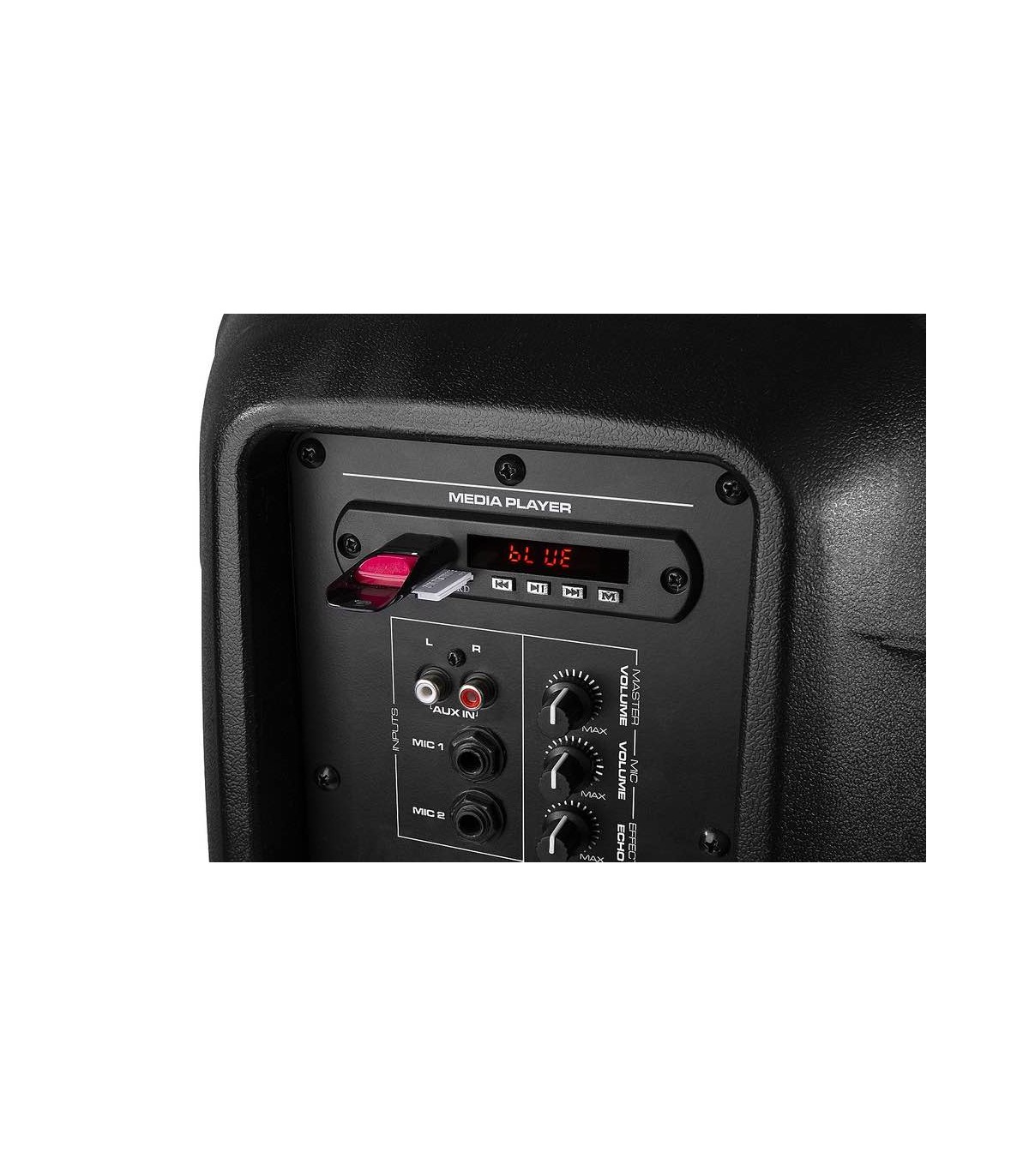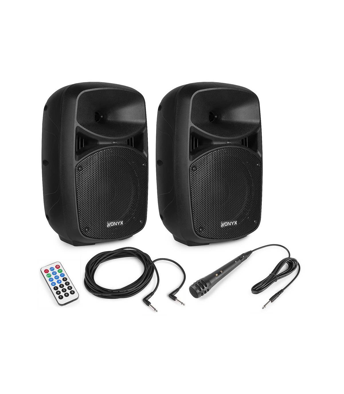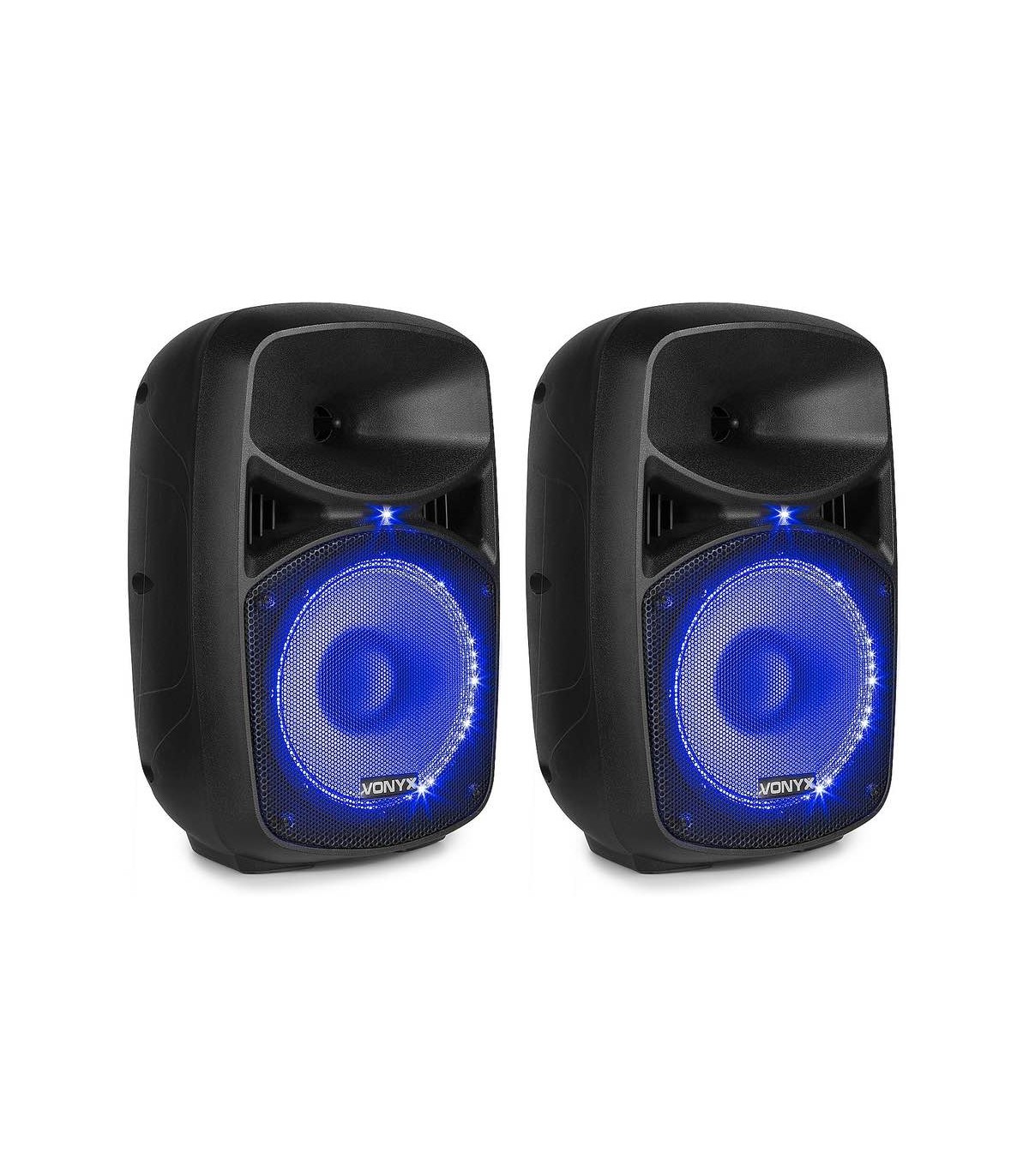 VPS082A è un set plug & play completo, pronto per iniziare la tua festa. Il set contiene una coppia di altoparlanti da 8 ", un modello passivo e uno attivo. Il modello attivo ospita l'amplificatore che ha un lettore USB / SD integrato e tecnologia wireless BT per trasmettere la tua musica in modalità wireless dal tuo smartphone o tablet Entrambi gli altoparlanti hanno un anello LED blu attorno al woofer per colorare e illuminare la tua festa Completa il kit un microfono cablato per karaoke o presentazione.