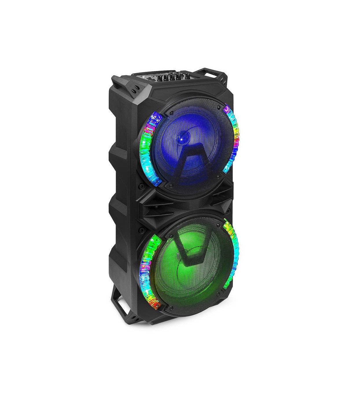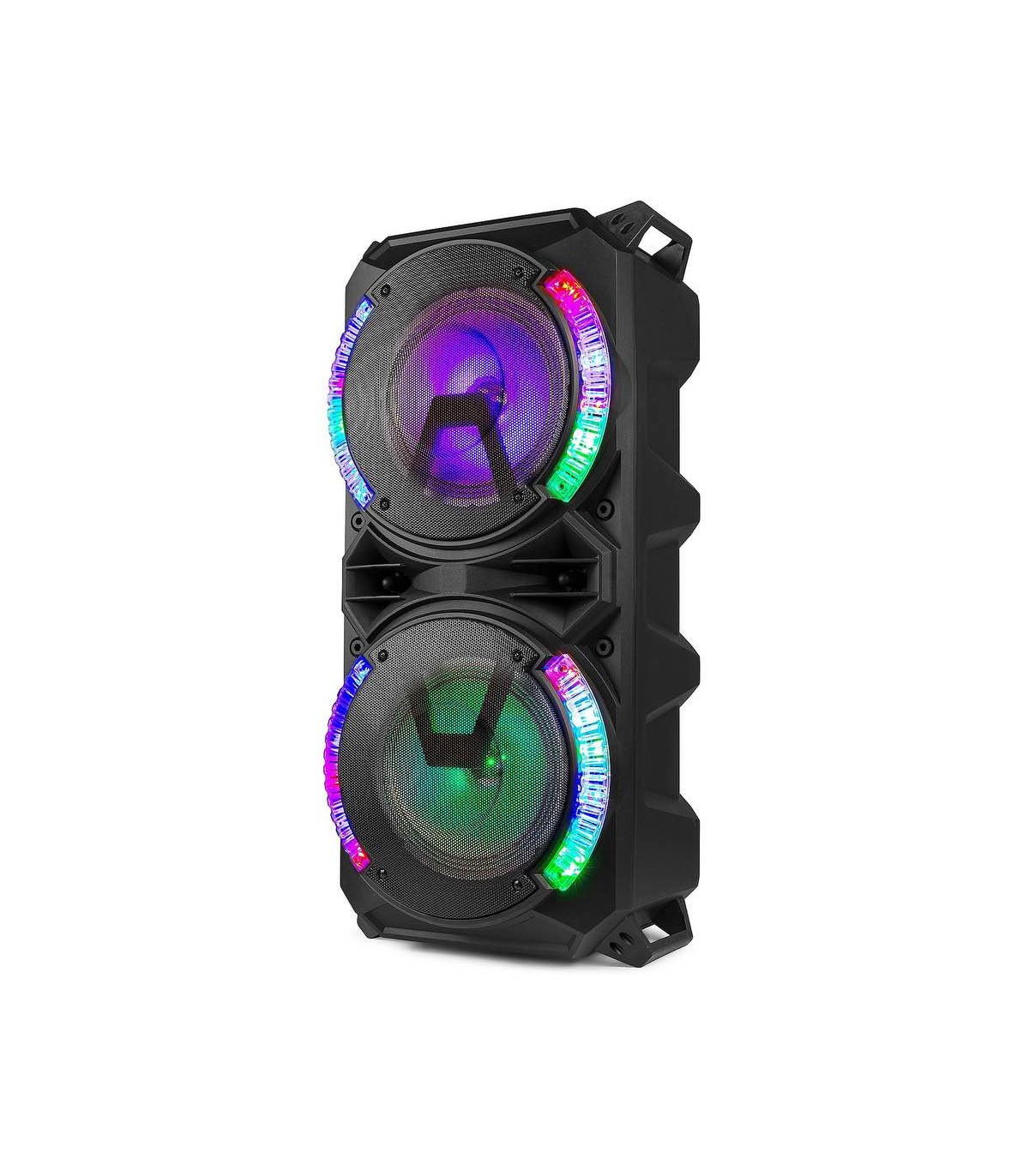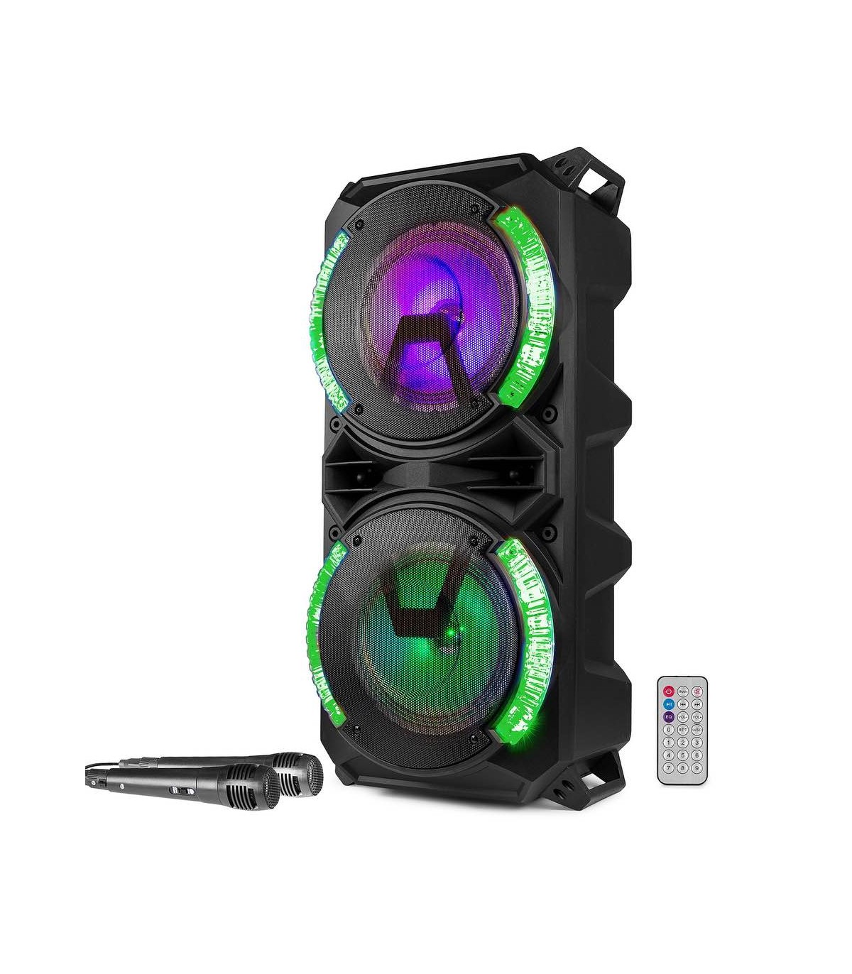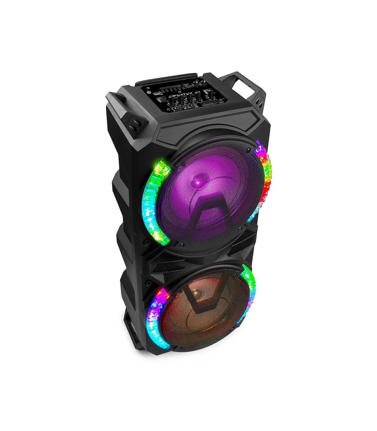 In piedi, questa è la stazione karaoke LIVE280. Questo potente altoparlante 2x 8" con batteria e amplificatore integrati è dotato di 2 microfoni. È inoltre dotato di tecnologia BT per riprodurre in streaming la tua musica preferita dal tuo smartphone, tablet o PC e di un lettore multimediale integrato per collegare una scheda microSD/USB stick per la riproduzione diretta della musica.Le luci LED RGB commutabili con controllo del suono intorno agli altoparlanti aggiungono un effetto straordinario a qualsiasi festa o evento.Per coloro che preferiscono un approccio più rilassato, è incluso un telecomando per azionare LIVE280 a distanza.