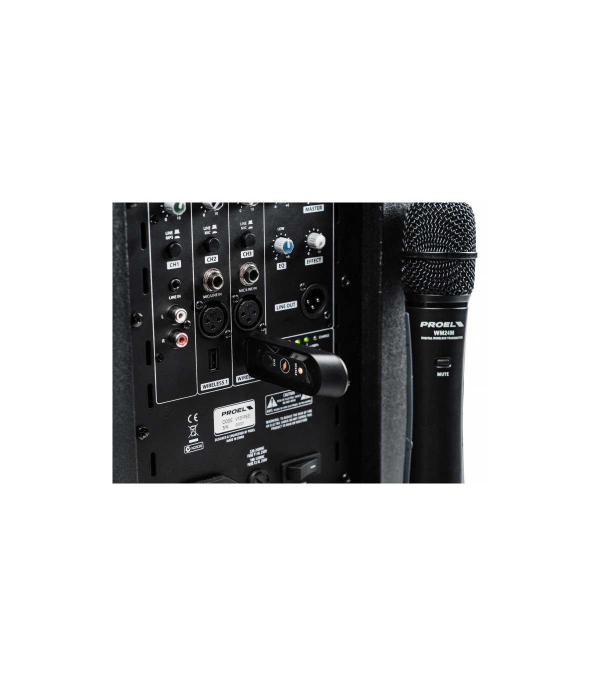Il MEDIA PLAYER che trovate a bordo è in grado di riprodurre musica non solo da una card SD o da una chiavetta di memoria USB, ma anche dal vostro smartphone o tablet attraverso una connessione BLUETOOTH, senza bisogno di cavi. Il mixer a tre canali incorporato, con controlli di livello indipendenti ed equalizzatore a due bande, include anche due ingressi USB per collegare i radiomicrofoni PROEL 2.4GHz U24H or U24B dotati di ricevitore USB. La batteria agli ioni di Litio incorporata fornisce fino a 10 ore di autonomia, consentendo la massima libertà di movimento.