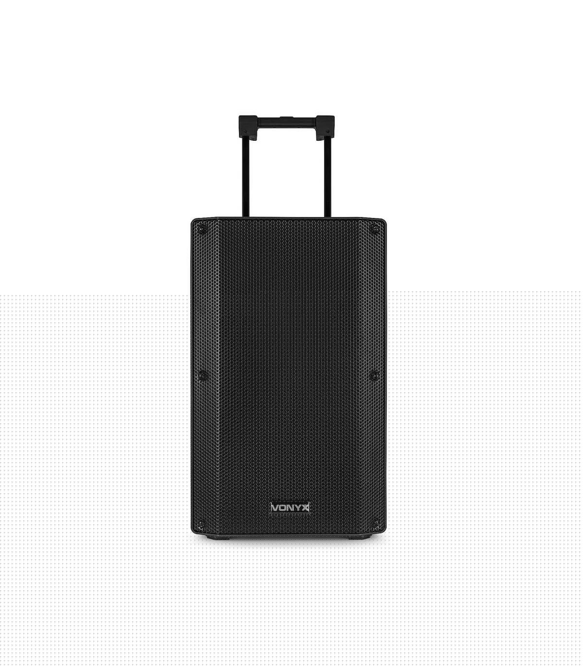 La serie Vonyx VSA è una serie di sistemi audio portatili professionali da 12” e 15” di alta qualità. L'amplificatore integrato è dotato di un ricevitore BT che consente lo streaming di tutta la tua musica preferita da uno smartphone o tablet e una porta USB/slot SD per la riproduzione di MP3. Per essere sempre chiaro cosa si sta riproducendo, questi sistemi audio hanno un display grafico chiaro per la visualizzazione dei tag ID3. Grazie alla batteria ricaricabile incorporata, questi sistemi sono perfetti per applicazioni come PA e performance da strada. I sistemi VSA includono anche 2 microfoni UHF per la massima libertà. Il pannello posteriore di questi sistemi offre connettività, versatilità e funzionalità in abbondanza. Include un canale di ingresso microfono con un ingresso combo XLR a 3 pin, un ingresso Aux-line, controlli per la regolazione del tono, un'unità di controllo Mp3 e una sezione di indicazione della batteria in cui è possibile controllare facilmente lo stato della batteria. Offre inoltre sia un ingresso di linea che un'uscita di linea utilizzando un jack RCA. Qui puoi collegare unità audio con uscita a livello di linea come un mixer o un altro dispositivo esterno. Infine, è presente una sezione dedicata per controllare in modo indipendente due canali di microfoni wireless UHF. Tutto è racchiuso in un unico contenitore per carichi pesanti, con ruote a rulli e una maniglia di sollevamento per facilitare il trasporto.