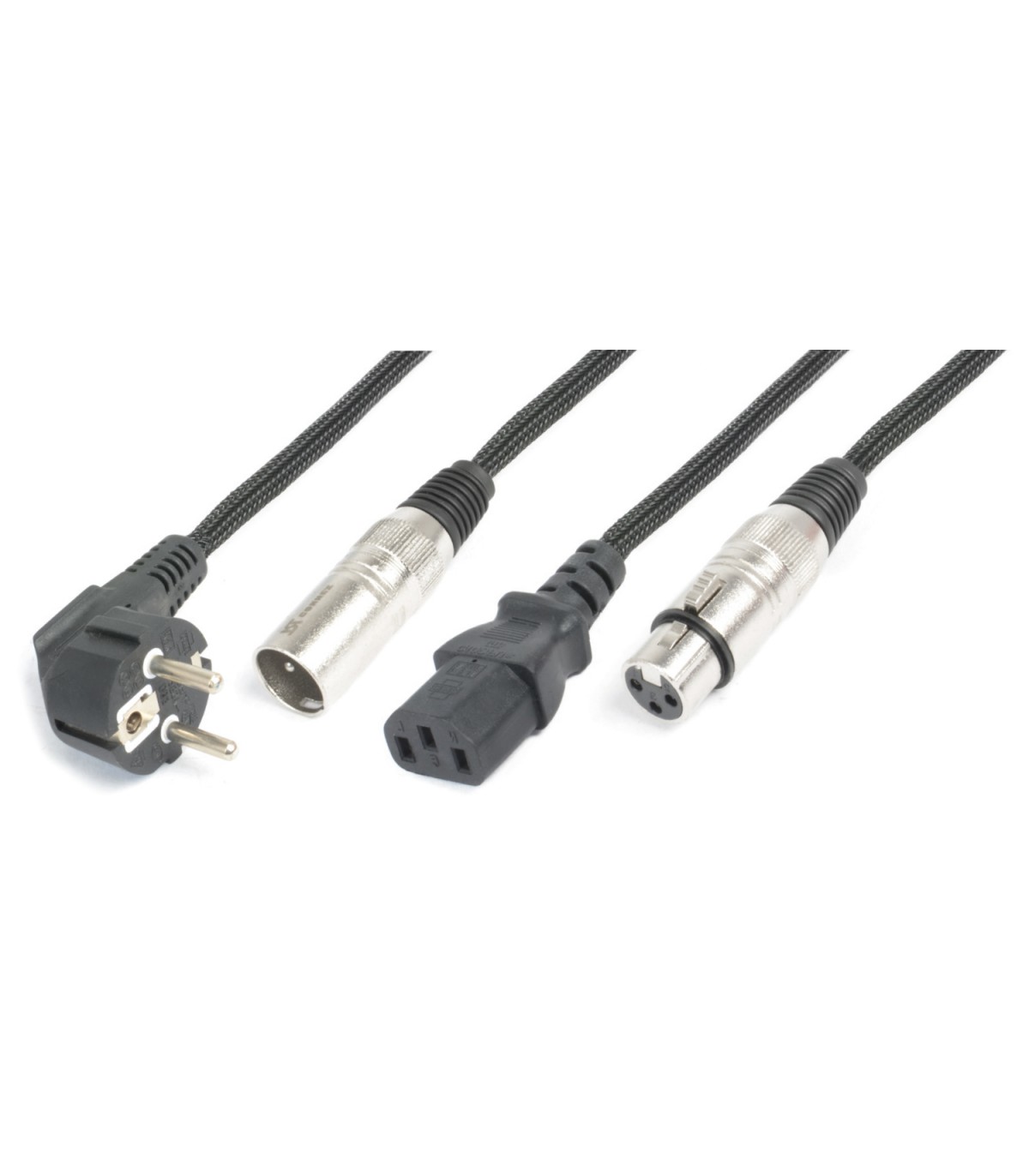 Alimentazione e segnale combinati in un unico cavo. Con Schuko e XLR da un lato e IEC e XLR dall'altro, questi cavi semplificano il cablaggio degli effetti LED, delle teste mobili e wall washer.