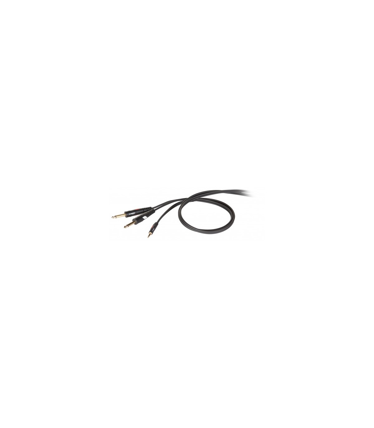 Cavo assemblato professionale "INSERT" con connettori stampati Die Hard Gold / jack Ø 3,5 mm stereo - 2 * jack Ø 6,3 mm mono. Lunghezza: 1,8 metri. Colore disponibile: Nero.