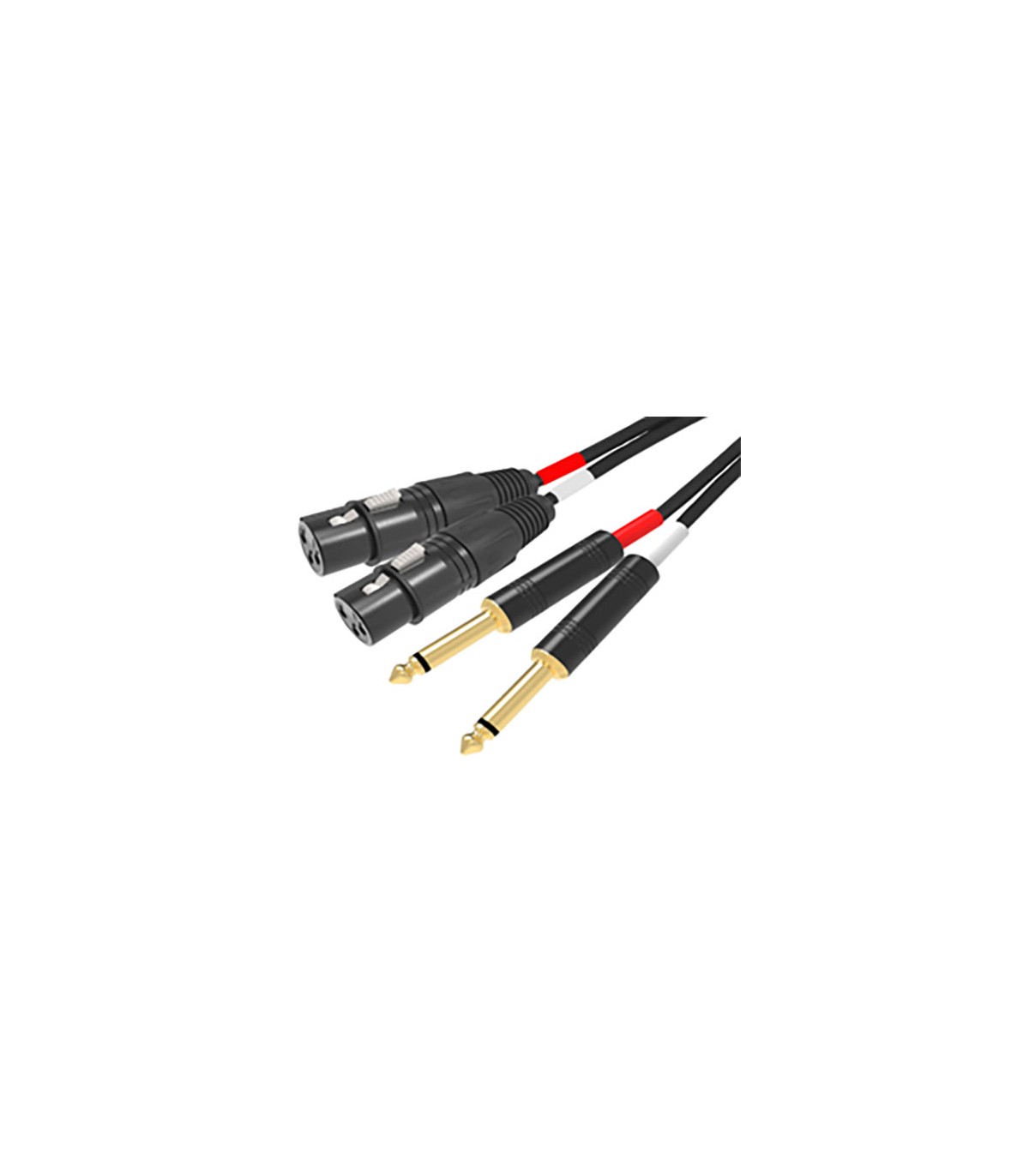 Cavo audio professionale con connettori in metallo placati oro per la massima conduttività. Da un lato sono presenti due connettori XLR femmina mentre dall'altro capo del cavo sono presenti due connettori Jack 6,3mm mono. Ideale per il collegamento di mixer, diffusori amplificati o in generale per ogni collegamento audio che richiede tali connettori. Lunghezza: 3mt