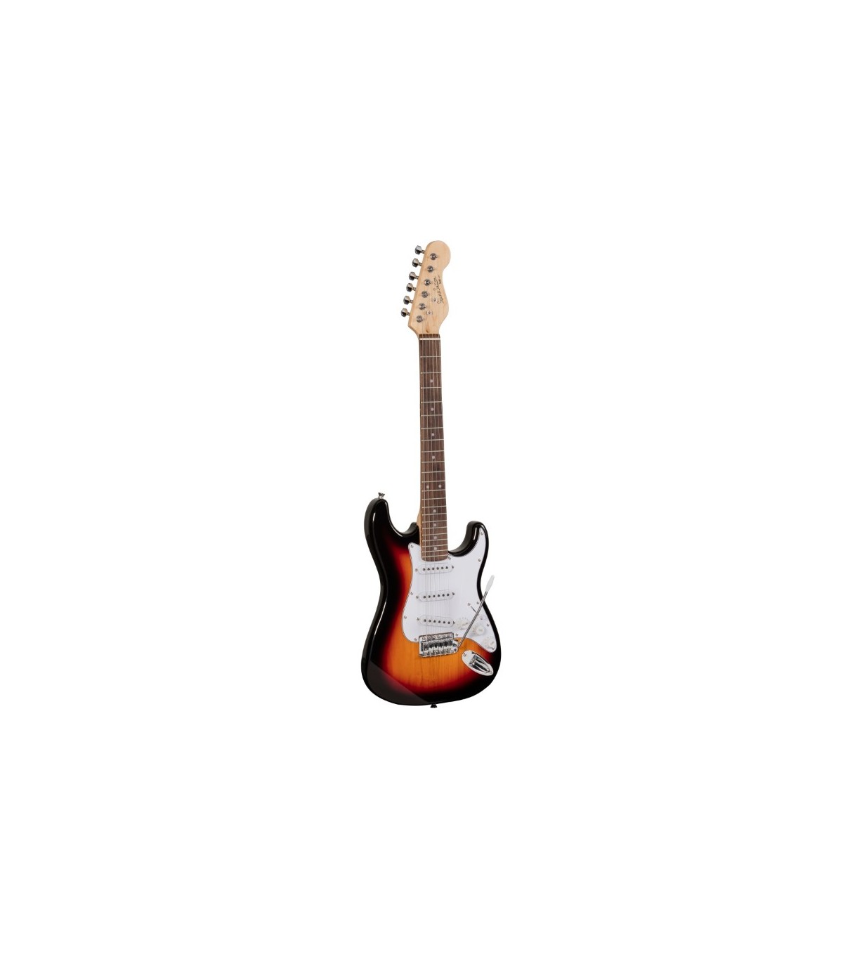 La serie RIDER rivisita il classico dei classici: una chitarra elettrica double cutaway con corpo in basswood per garantire timbro e robustezza e 3 single coil per un suono chiaro e brillante. La tastiera 22 tasti è in Eco-Rosewood per preservare il feeling e il look del palissandro nel rispetto della normativa CITES. Il selettore a 5 vie in combinazione col potenziometro volume e tono garantisce grande varietà timbrica per spaziare dal blues al rock passando per il funk. La versione JR ha un corpo di dimensioni 3/4 perfetto per gli studenti più giovani che pretendono suonabilità, qualità dei materiali e della costruzione.