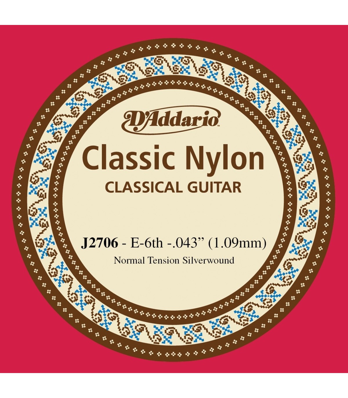 D'Addario J2706 - Corda singola in nylon per chitarra classica adatta per studenti, tensione normale, corda Mi basso
