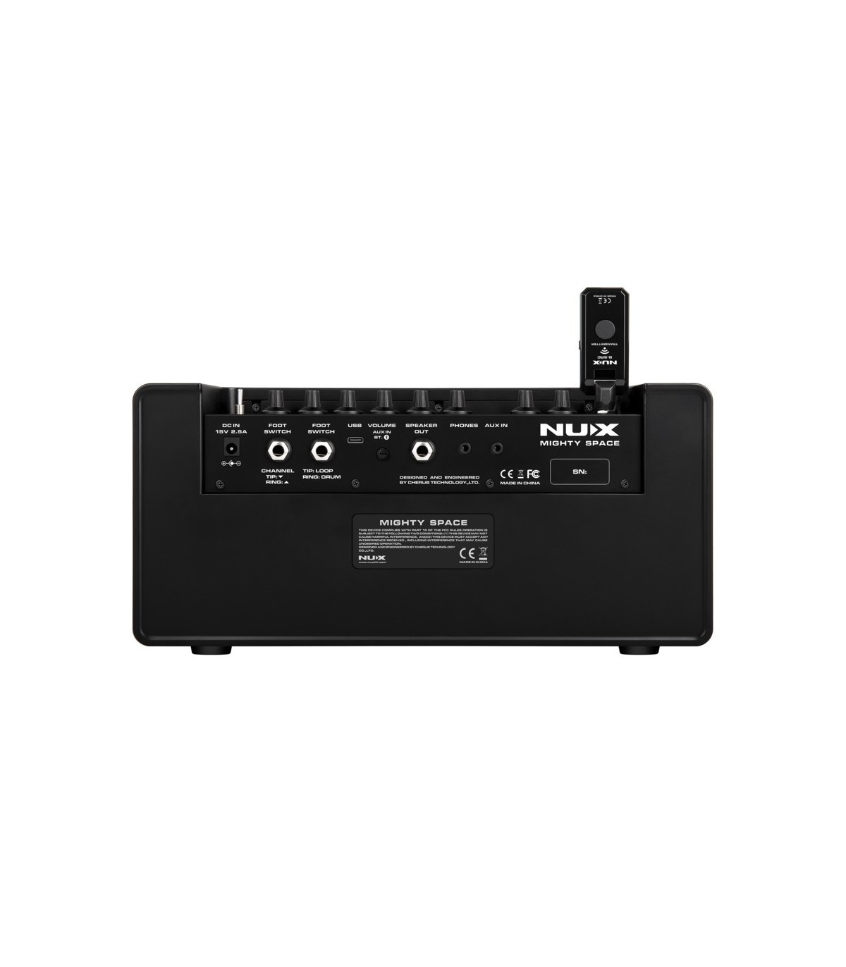 Potente, flessibile, wireless e alimentato a batteria: afferra la chitarra, il basso o l'acustica e sei subito pronto a sfornare riff e lick senza stare a perdere tempo con cavi e alimentatori. Mighty Space è il Modeling Amp da desktop wireless che condensa tutta la tecnologia NUX in un formato compatto e leggero senza sacrificare qualità e potenza: 30W, tantissimi Amp leggendari per elettrica, basso e acustica, IR ad alta definizione con IR loader, una sezione EFX completa a blocchi liberamente ordinabili e tutta la comodità di una trasmissione wireless sempre impeccabile unita a una doppia batteria che garantisce ben 7 ore di utilizzo. Puoi anche pilotare la funzione Drum & Loop tramite il pedale incluso NMP-2 Lite, editare preset in profondità con la App dedicata e caricare IR di terze parti col software Mighty Editor"!. Vuoi di più? Prova a collegare il MIGHTY MSPACE a un cabinet esterno, e preparati a far tremare i muri. Oppure usa l uscita USB per trasformarlo in una scheda audio pronta per registrare.