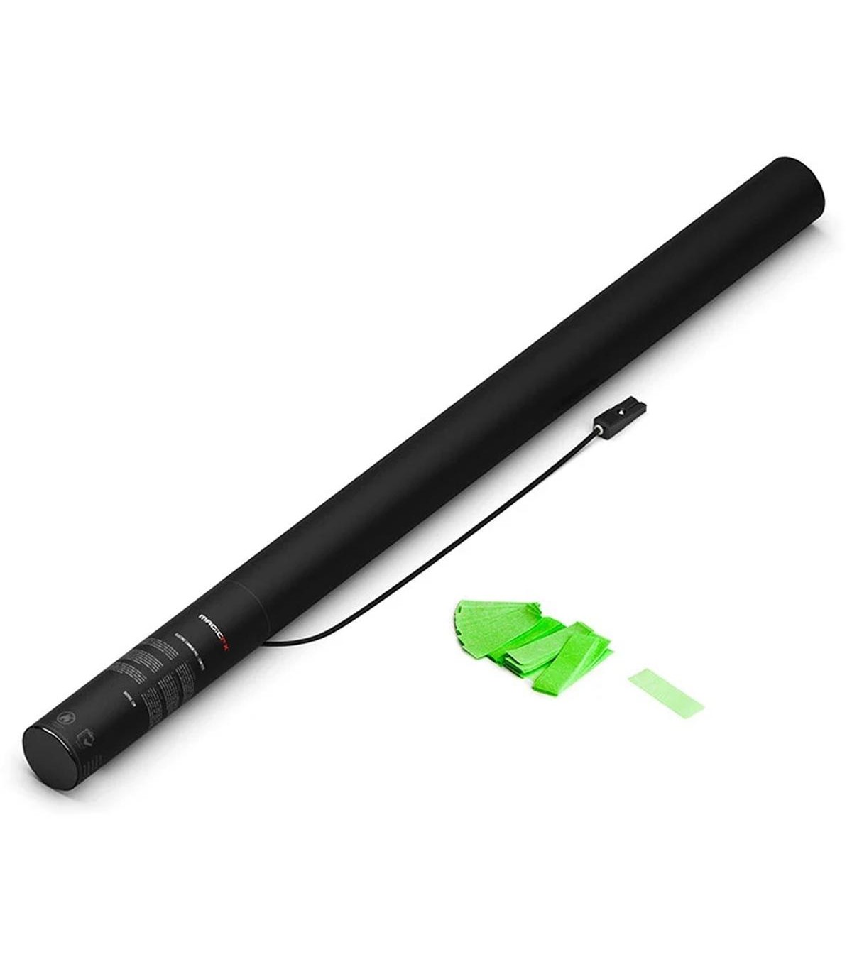 Spara coriandoli ignifughi (B1) in aria con questo lanciacoriandoli elettrico. Questo cannone da 50 cm può sparare coriandoli fino a 8 metri di distanza.