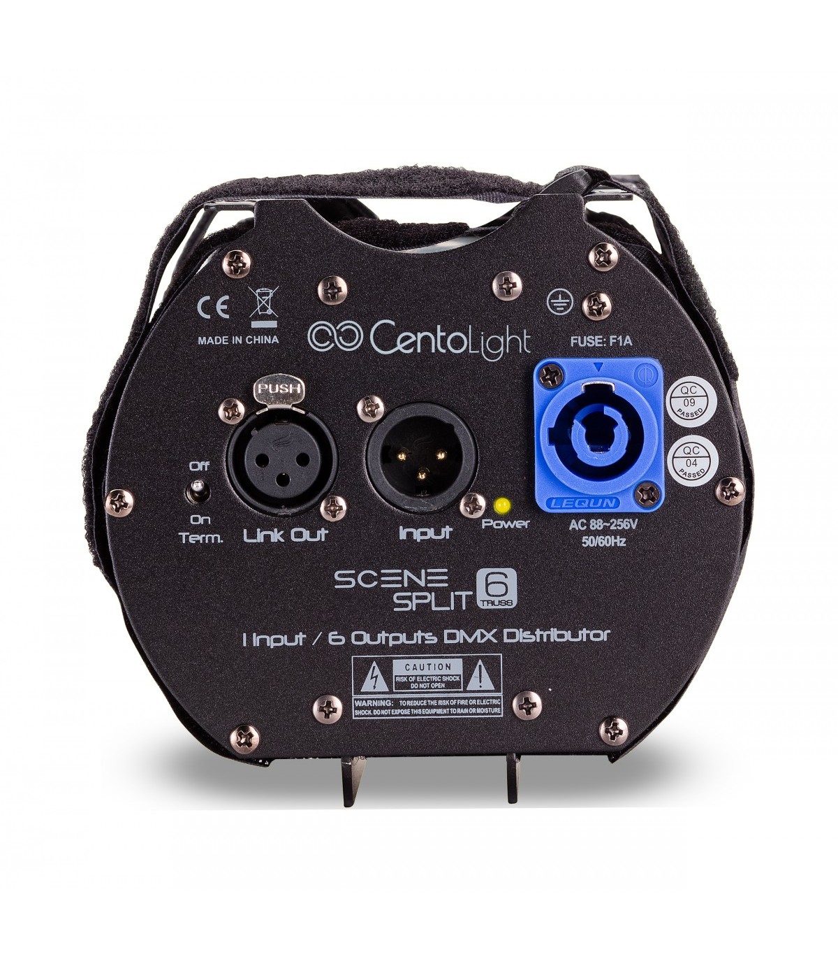 SCENESPLIT 6 TRUSS è un distributore DMX professionale 1IN - 6OUT DMX il cui telaio è stato appositamente pensato per essere installato su truss o altre strutture da palco. La qualità dei compoenenti interni e il tipo di circuitazione lo rendono ideale per applicazioni nel campo dello spettacolo di alto livello.