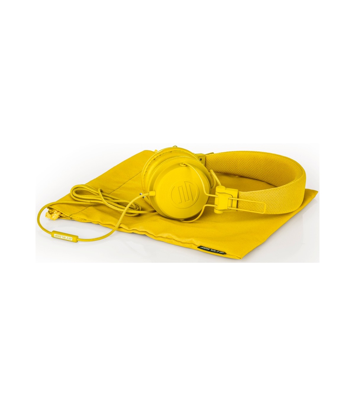 Cuffia professionale ultra compatta con padiglioni ruotabili, driver ad elevato isolamento acustico, pressione acustica 95 dB, risposta in frequenza 10 Hz - 20 kHz, microfono integrato compatibile con tutti i telefoni cellulari attuali dotati di mini jack da 3,5 mm (iPhone e altri smartphone), peso 123 g, finitura in gomma di colore giallo.