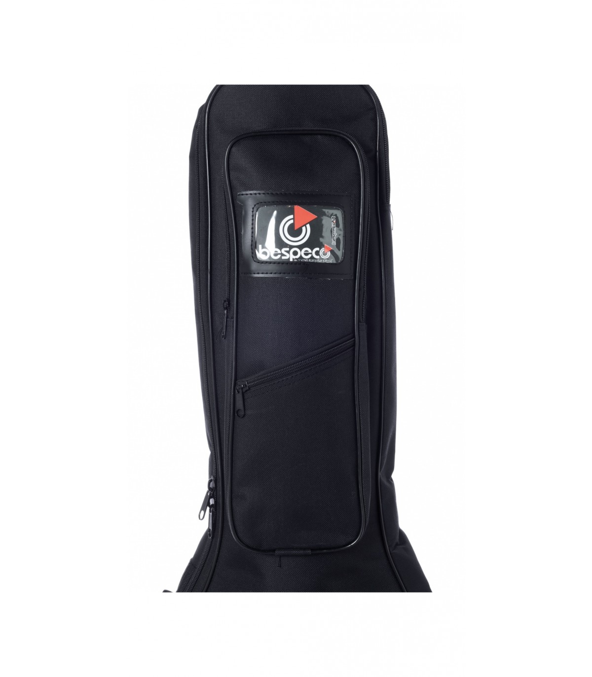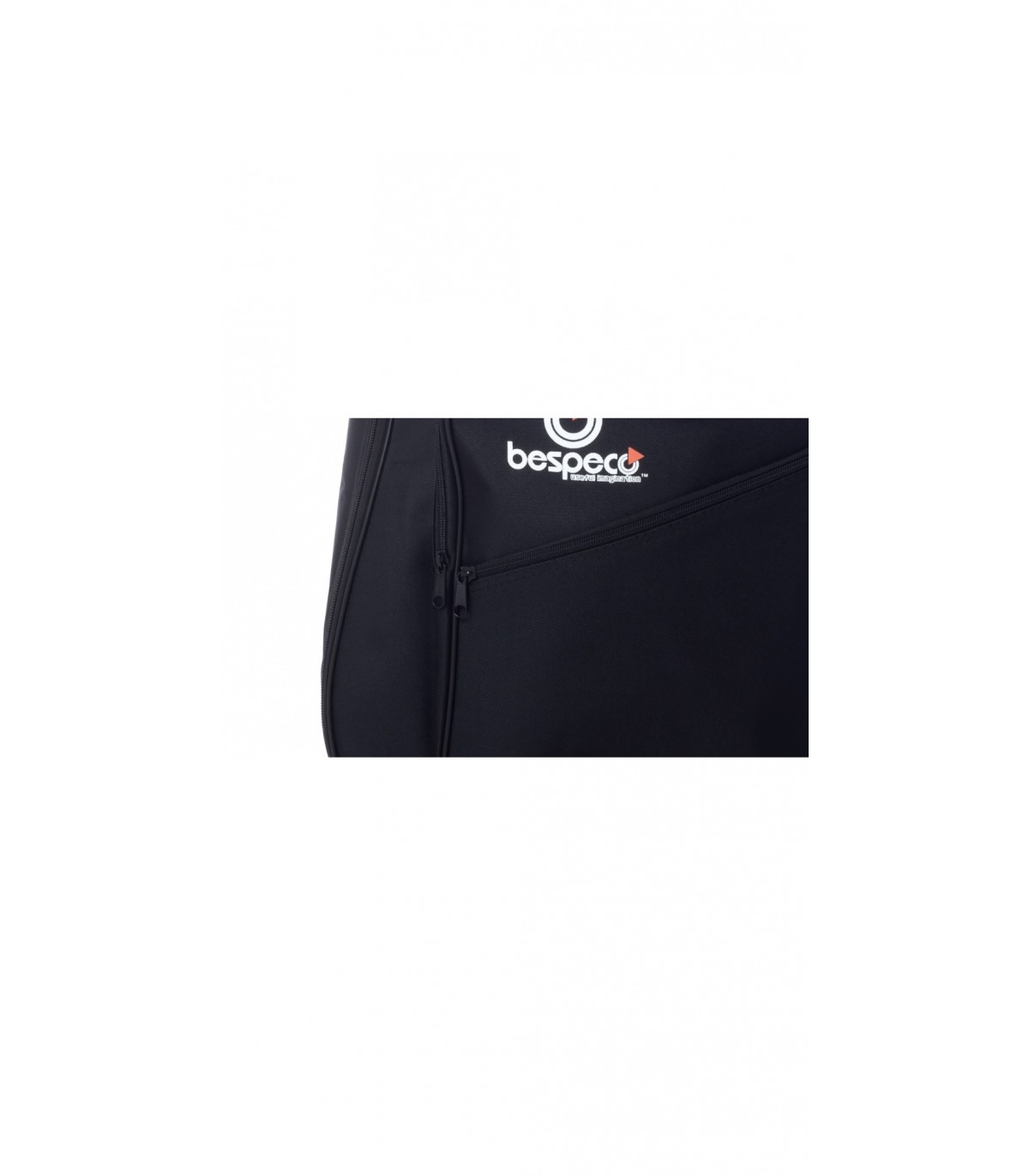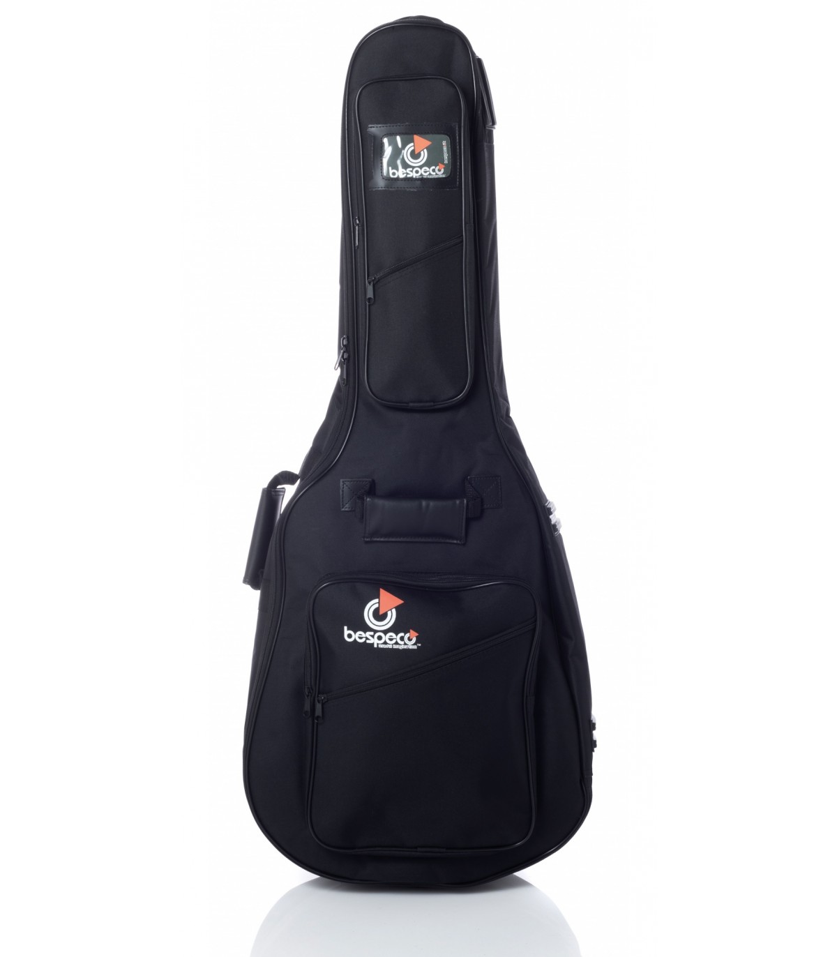 Borsa morbida serie Training Line per chitarra classica, con imbottitura da 10 mm. Realizzata in "Oxford cloth 600D" antistrappo e bordatura in PVC, colore nero. Maniglia imbottita. Tracolla doppia regolabile e ampia tasca frontale e superiore. Gommini paracolpi in gomma naturale. Robuste cerniere lampo cucite con nylon antistrappo. Gancio posteriore. Rinforzo interno a protezione di corde e ponte.