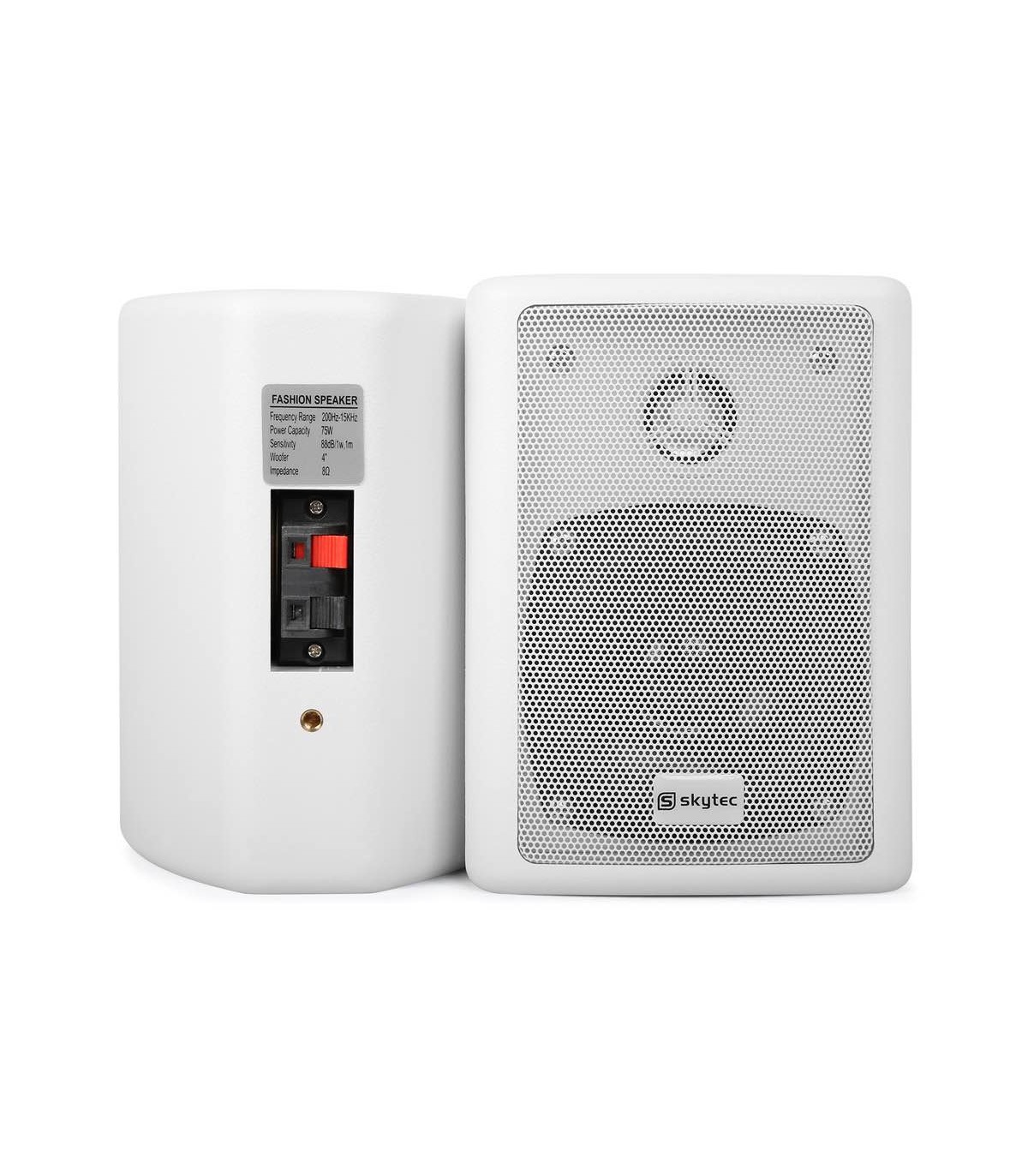 Set di altoparlanti di grande potenza e di raffinata struttura in ABS con griglia rigida in metallo. Include un woofer con cono di Mica, che produce dei bassi profondi, omogenei e precisi. E un tweeter con cupola in Mylar che produce frequenze altissime. La staffa fornita nella confezione, permette di montare l'altoparlante a muro. Adatto all'uso in hi-fi e audio surround.