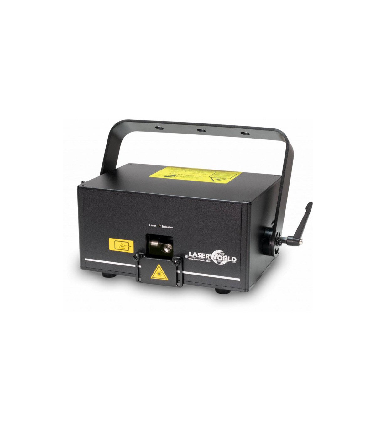 Laserworld CS-1000RGB MK4 è un sistema laser RGB multicolore con una potenza d'uscita totale fino a 1000 mW e una potenza d'uscita garantita di 800 mW. La sorgente laser rossa ha una potenza di 200 mW / 650 nm, quella verde di 70 mW / 520 nm e quella blu royal di 530 mW / 445 nm. Le sorgenti laser garantiscono colori brillanti e potenti raggi laser.