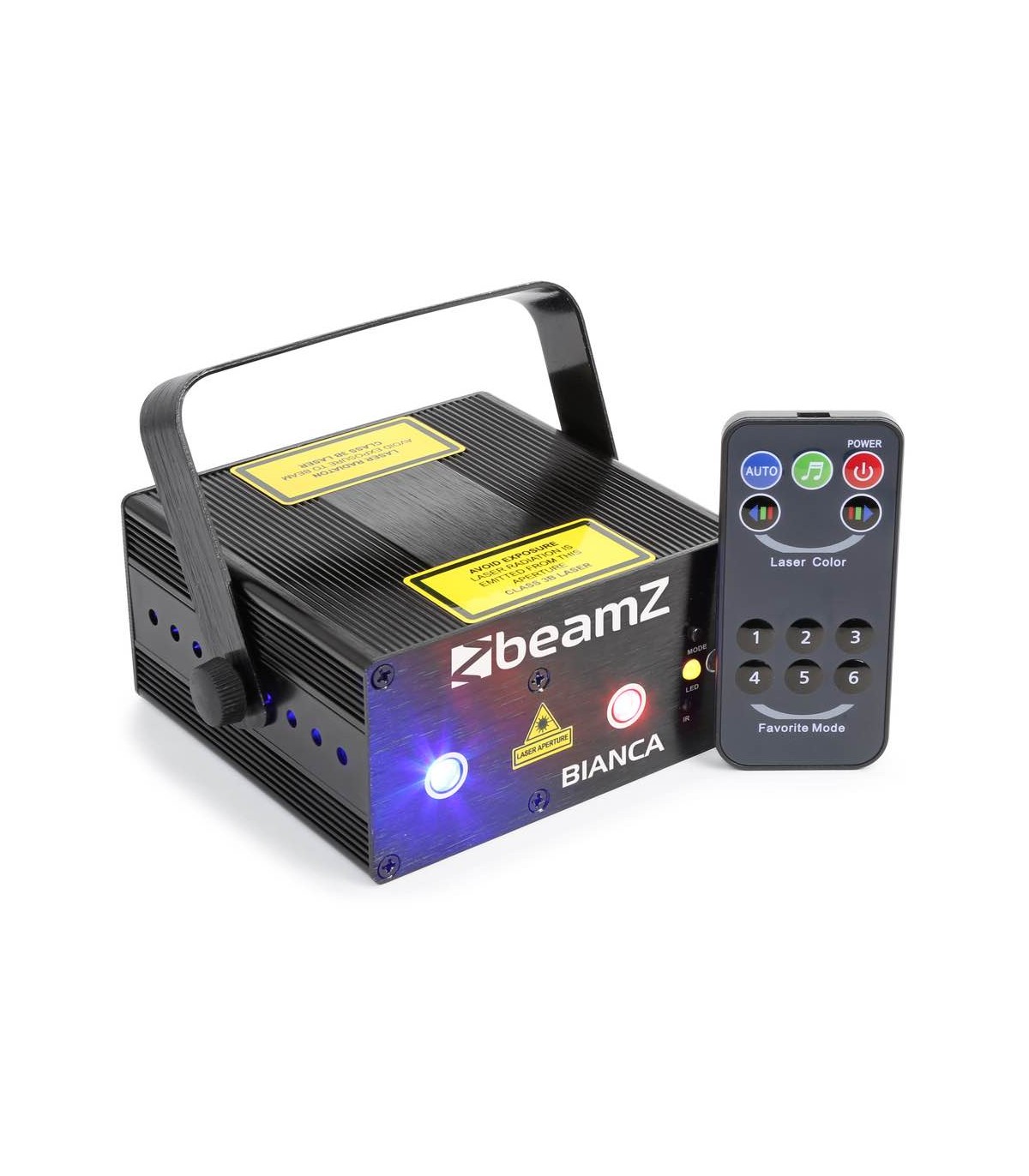 Il laser Bianca Double è un'unità laser rosso, verde e blu plug and play e riproduce 12 effetti gobo diversi. Il laser RGB include un telecomando a infrarossi per il controllo wireless e per passare da programmi attivati dal suono o automatici. Adatto per discoteche, pub, discoteche, feste di famiglia ecc.