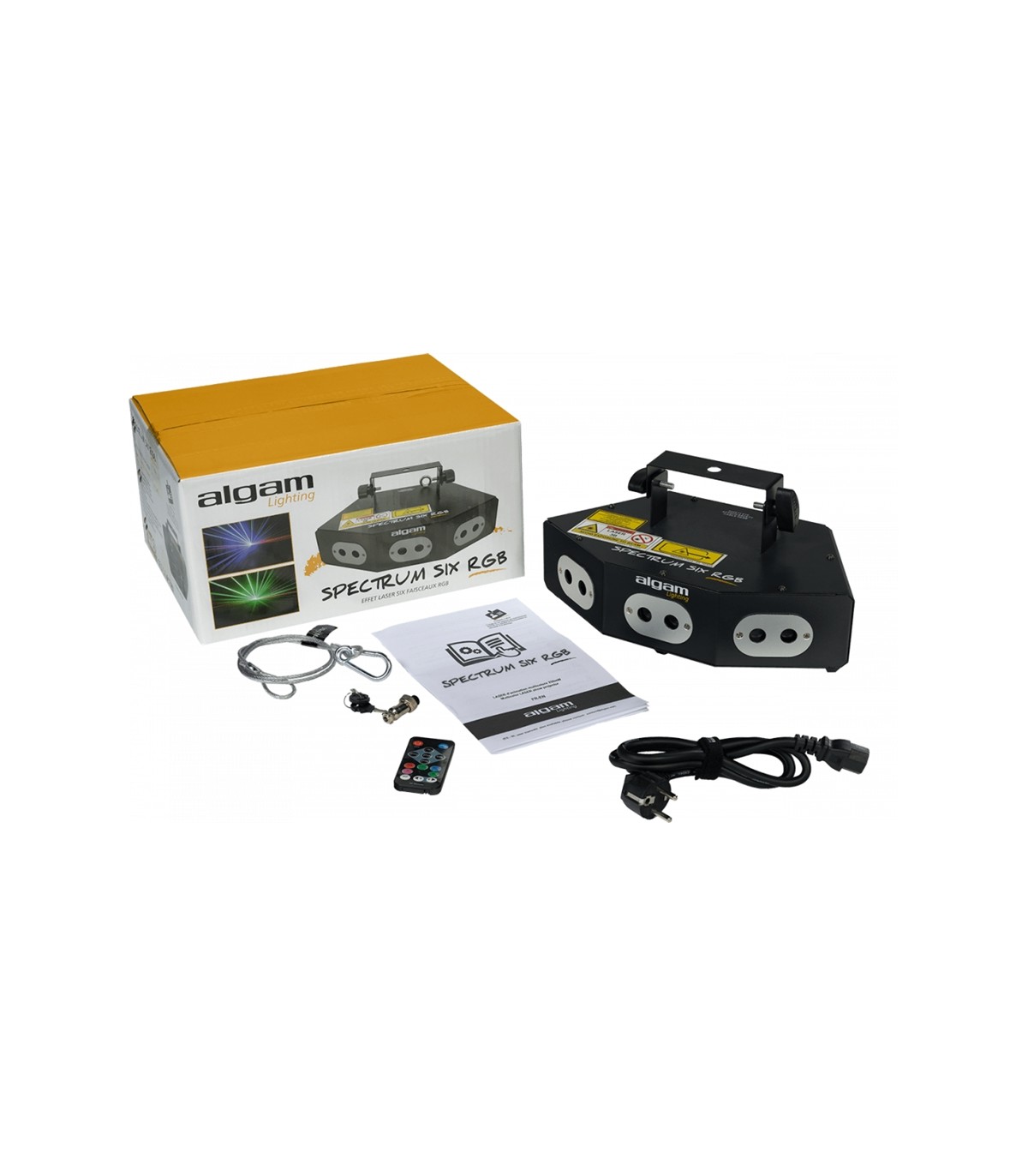 Lo Spectrum Six di Algam Lighting offre una potenza totale di 360 mW distribuita su 4 laser RGB motorizzati garantendo effetti sorprendentemente efficaci per questa categoria. Ideale per dj o installazioni mobili, riesce a coprire grandi volumi di spazio grazie alla potenza dei suoi 6 fasci grandangolari. Le sue 4 sorgenti luminose laser (2 rosse, 1 verde e 1 blu) consentono molteplici effetti di colore per animare la pista da ballo durante matrimoni, feste private e ogni altro tipo di evento. Facile da usare, grazie ai suoi numerosi programmi interni per il funzionamento automatico o controllato dalla musica, lo Spectrum Six offre anche una modalità strobo. È completamente controllabile DMX su 8 canali per controllare con precisione gli effetti laser e la loro velocità di rotazione. Infine, lo Spectrum Six è dotato di un telecomando IR per le numerose opzioni disponibili per creare una moltitudine di effetti sorprendenti.