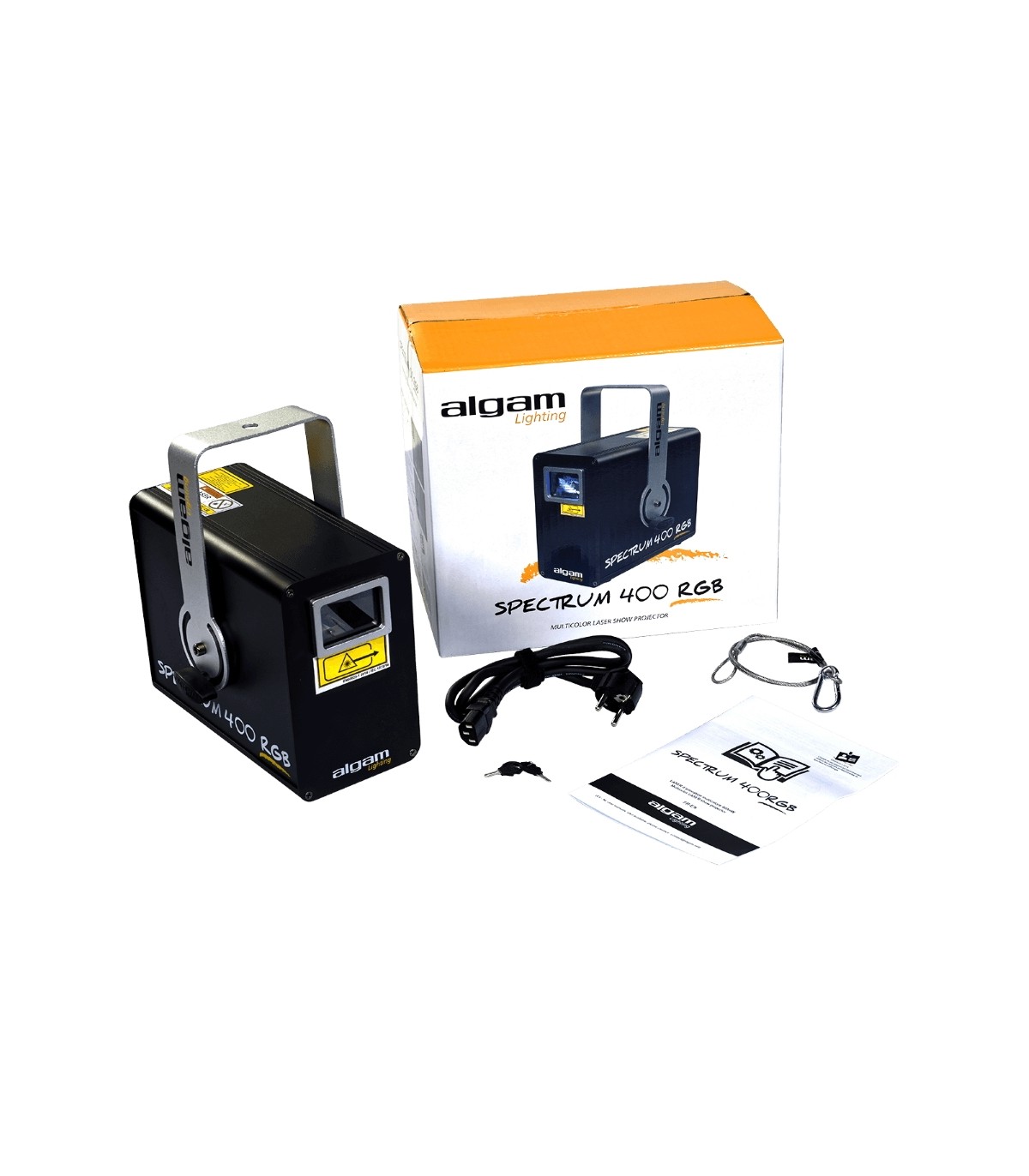 Lo Spectrum 400 RGB di Algam Lighting offre una potenza totale di 400 mW distribuita su 3 laser motorizzati garantendo effetti sorprendentemente efficaci per questa categoria. Ideale per i DJ o installazioni itineranti, lo Spectrum 400 RGB, grazie alle sue 3 sorgenti luminose laser (1 rossa, 1 verde e 1 blu), consente molteplici effetti per animare la pista da ballo durante matrimoni, feste private e ogni altro tipo di evento. Facile da usare, dispone di 128 programmi interni (effetti tunnel, onde, motivi geometrici, grafica, etc) per il funzionamento automatico o controllato dalla musica. Lo Spectrum 400 RGB è completamente controllabile DMX su 11 canali per un controllo preciso degli effetti laser e della loro velocità di rotazione, e per la gestione remota delle numerose opzioni disponibili per creare una moltitudine di effetti sorprendenti.