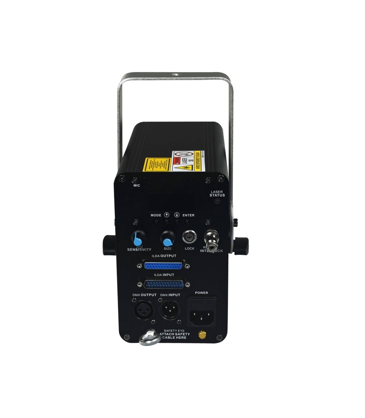 Lo Spectrum 500 RGB di Algam Lighting garantisce effetti sorprendenti in un'ampia gamma di colori grazie ai suoi tre laser: rosso, verde e blu. Ideale per l'installazione in un club o per DJ e discoteche itineranti, può coprire uno spazio di medie dimensioni con bellissimi strati multicolore grazie ai suoi raggi di scansione grandangolari e ai motori scanner che assicurano un'ottima fluidità alla dinamica degli effetti. Lo Spectrum 500 RGB è facile da usare e offre non meno di 2000 programmi interni (effetti tunnel, onde, motivi geometrici, grafica, ecc.) per il funzionamento automatico o controllato dalla musica. È completamente controllabile DMX su 6 o 34 canali per un controllo preciso degli effetti laser e della loro velocità di rotazione. Infine, il laser è compatibile con ILDA per personalizzare i pattern per effetti ancora più spettacolari.